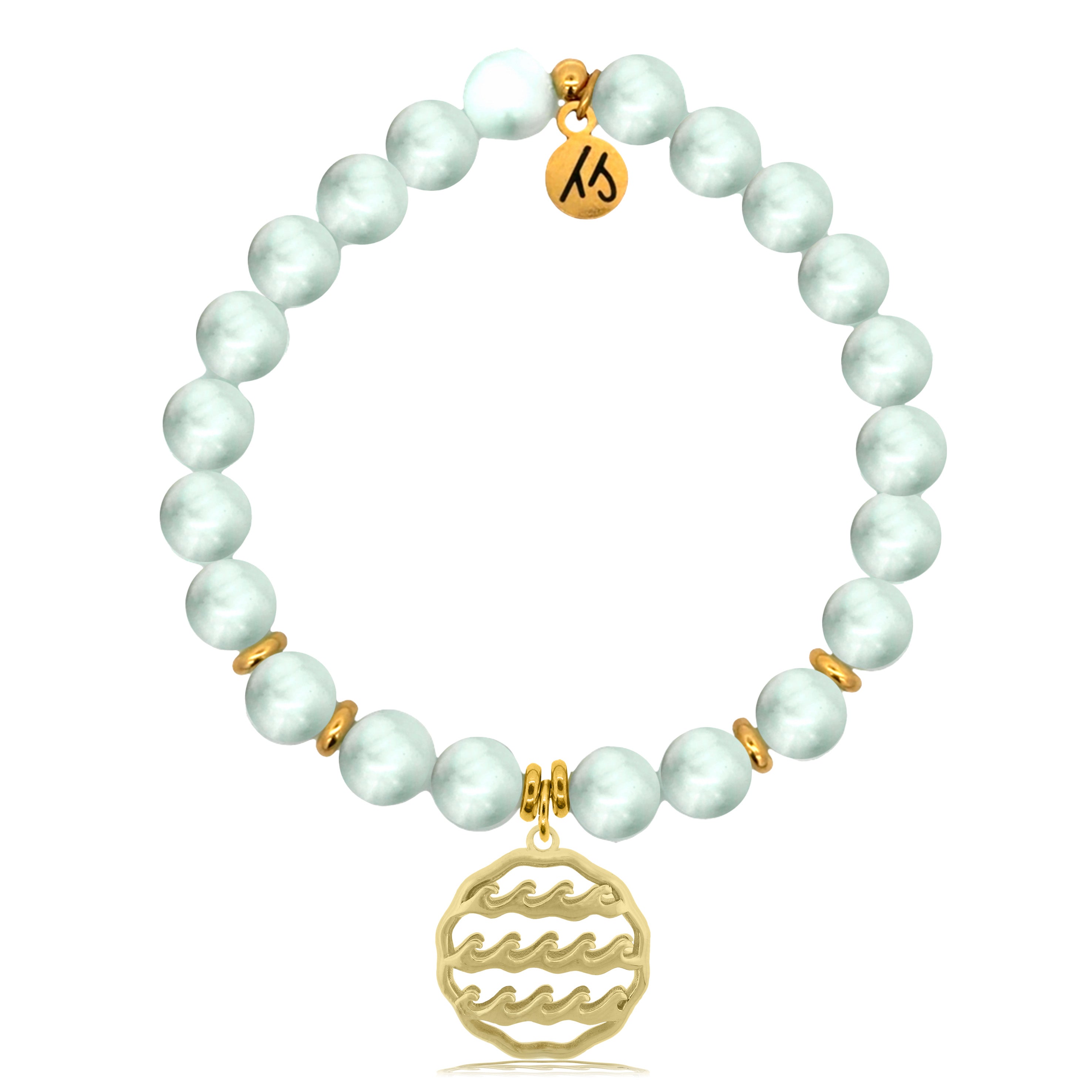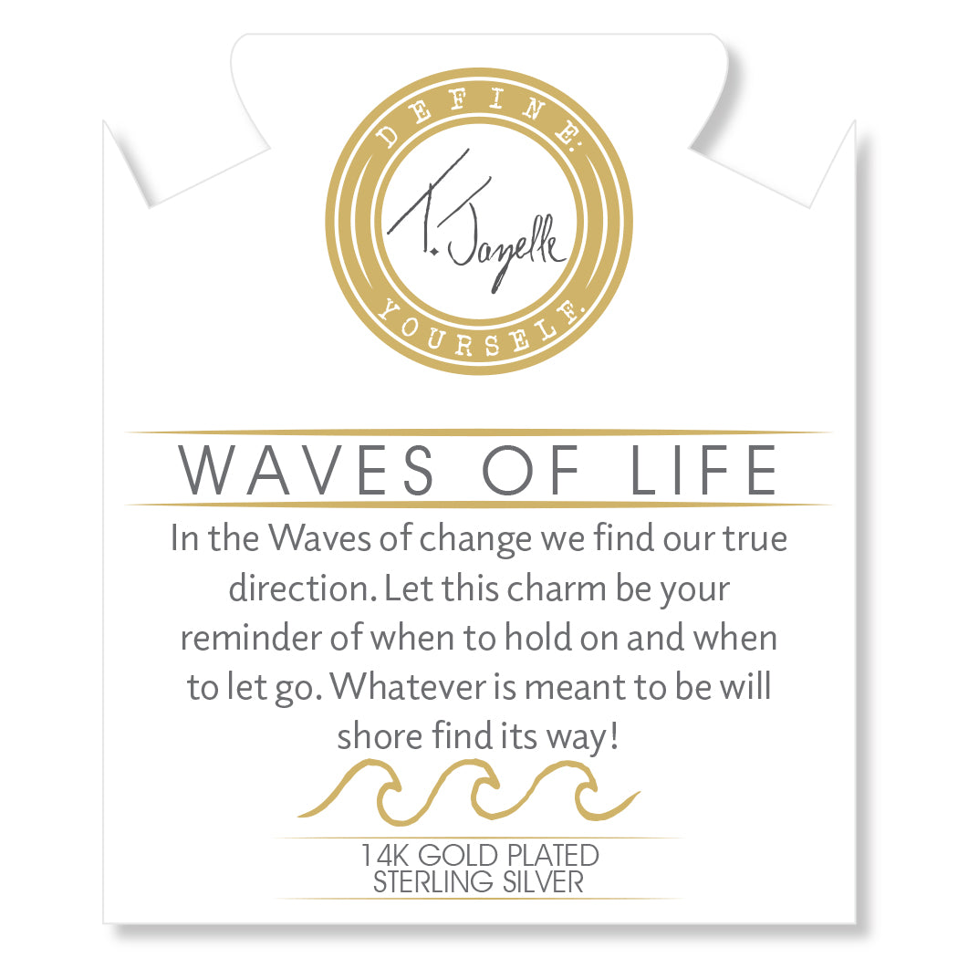 Gold Charm Collection - Green Angelite Gemstone Bracelet with Waves of Life Gold Charm