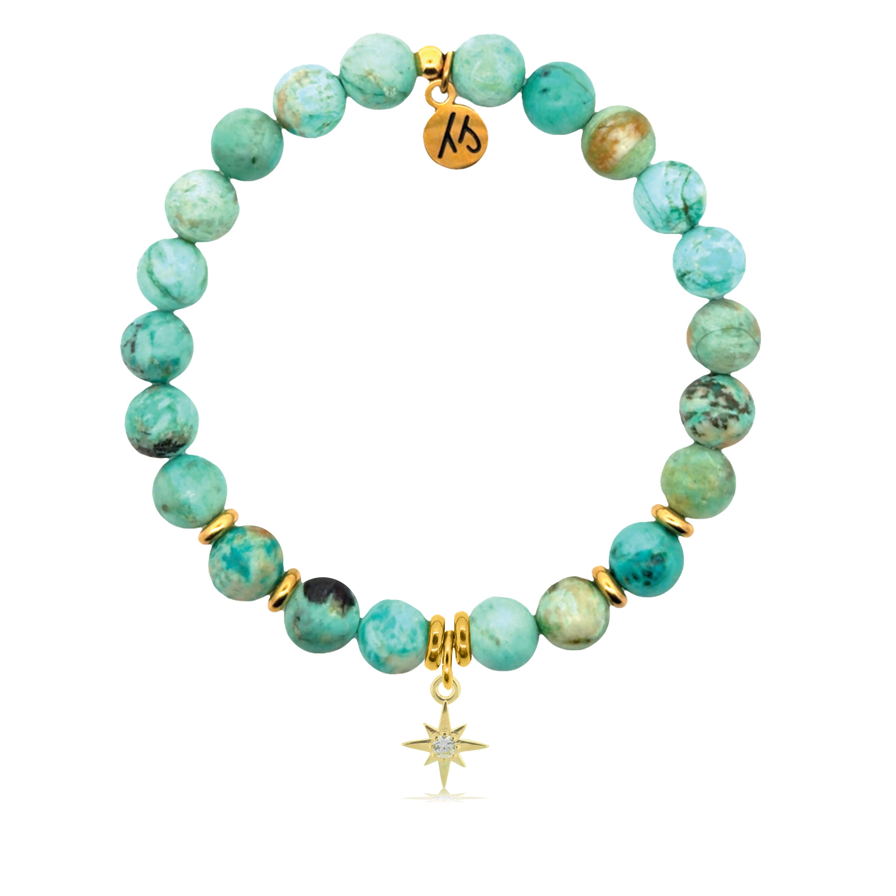 Gold Charm Collection - Peruvian Turquoise Gemstone Bracelet with It's You Year Gold Charm