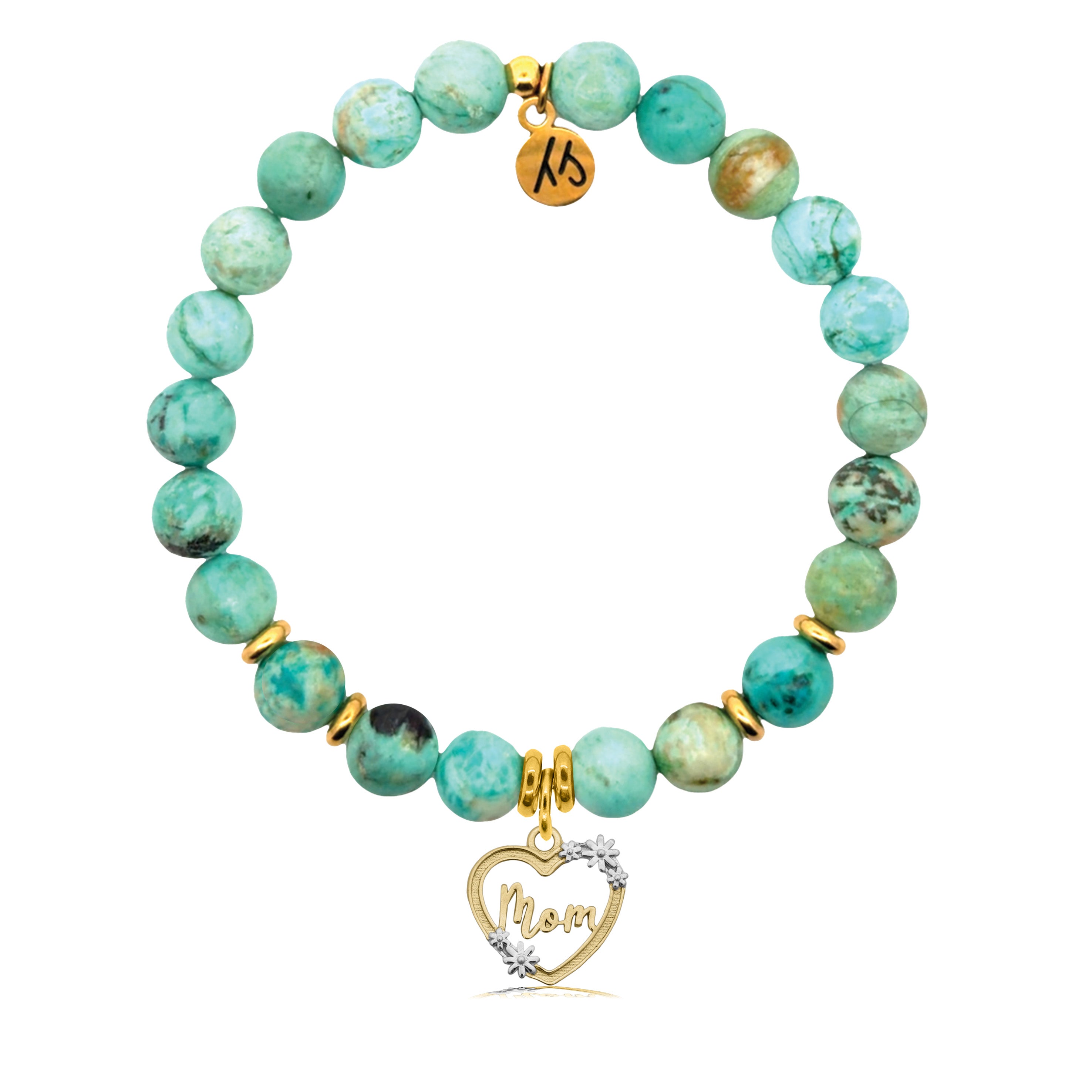 Gold Charm Collection - Peruvian Turquoise Gemstone Bracelet with Mom Heart Gold Charm