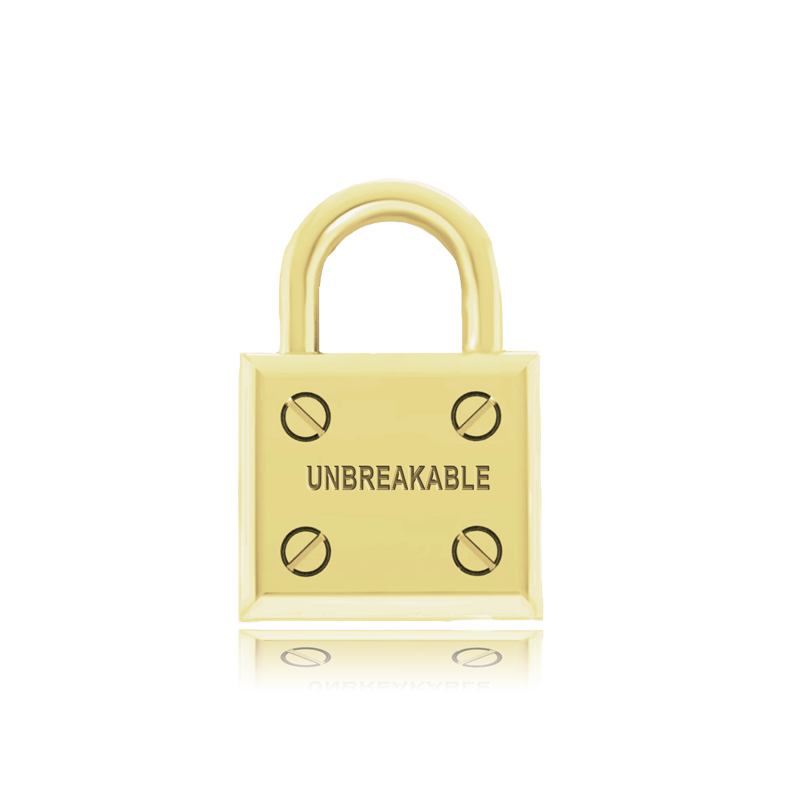 Unbreakable Gold Charm- This lock is a symbol of strength, courage and perseverance. Never forget that you are Unbreakable, the tough times only make you stronger and everyday you hold the strength within yourself to get through everything.