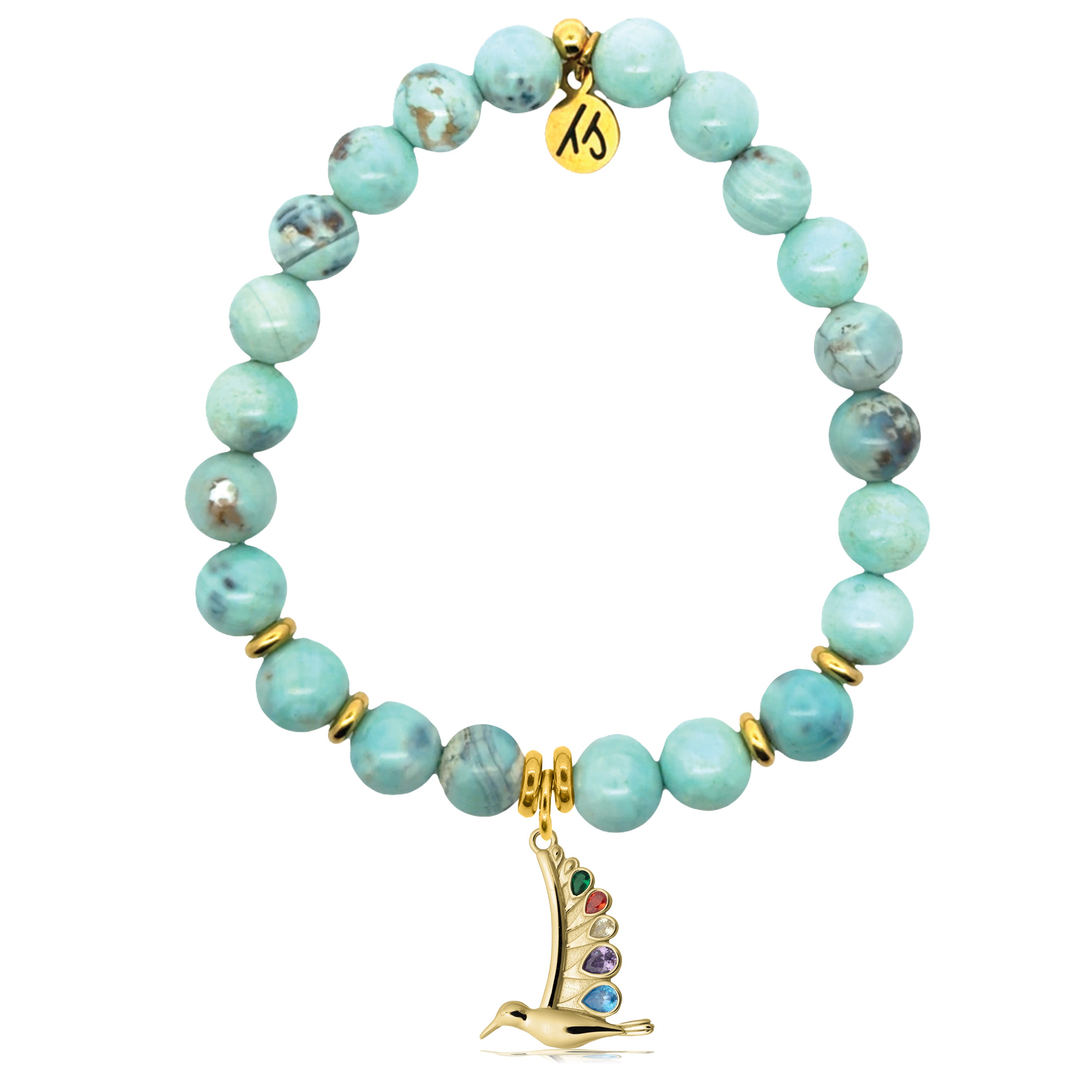 Gold Charm Collection - Robins Egg Agate Gemstone Bracelet with Hummingbird Gold Charm