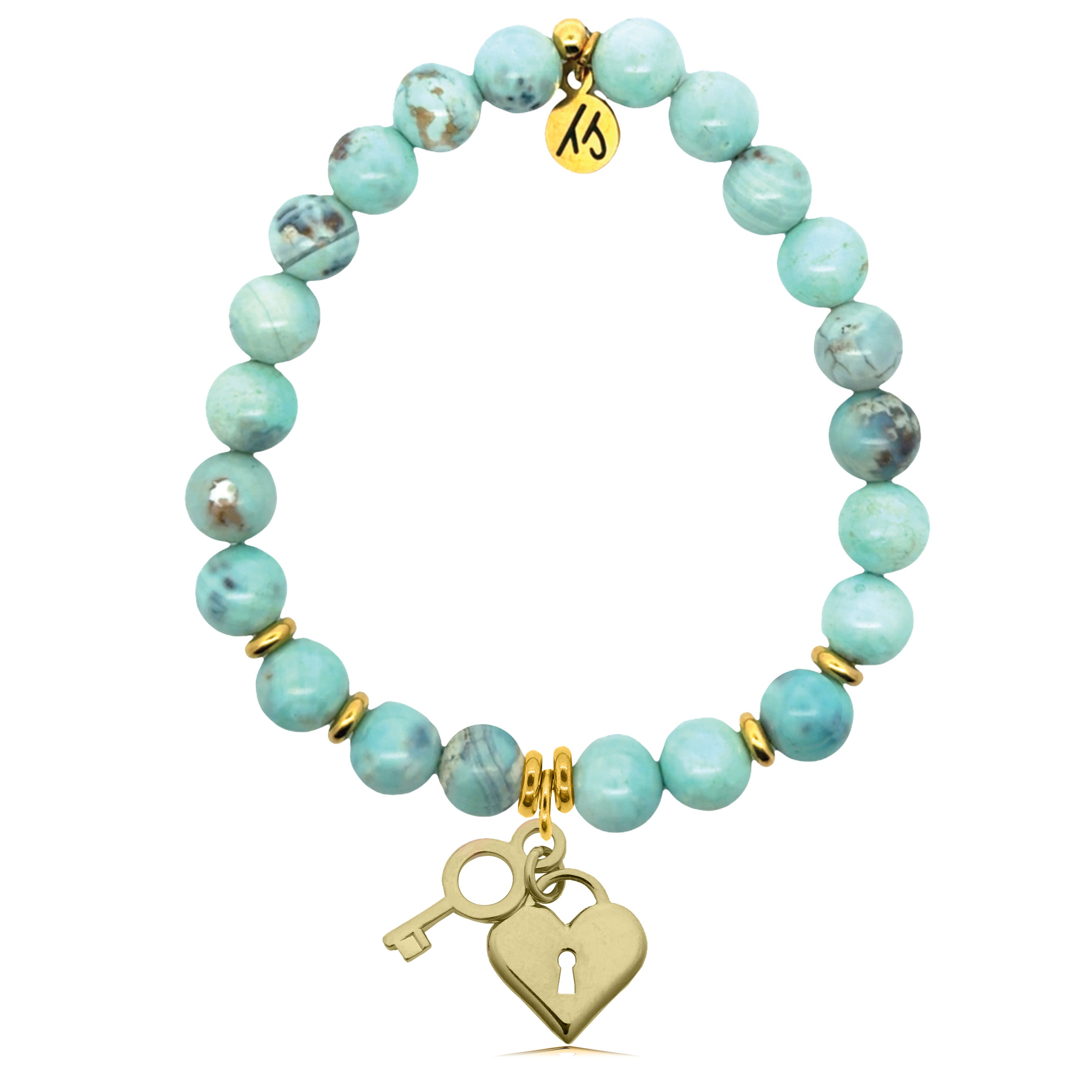 Gold Charm Collection - Robins Egg Agate Gemstone Bracelet with Key To My Heart Gold Charm
