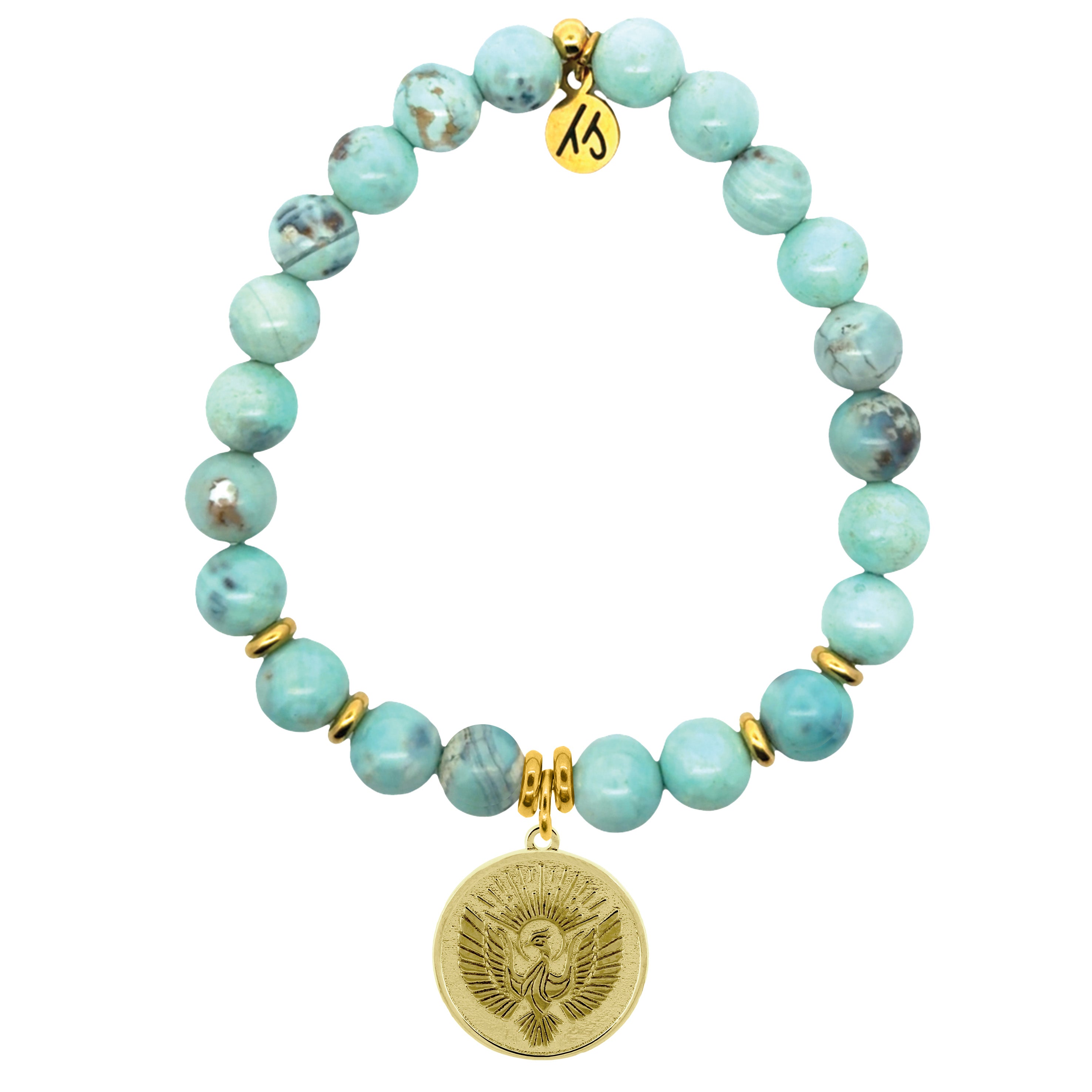Gold Charm Collection - Robins Egg Agate Gemstone Bracelet with Phoenix Gold Charm