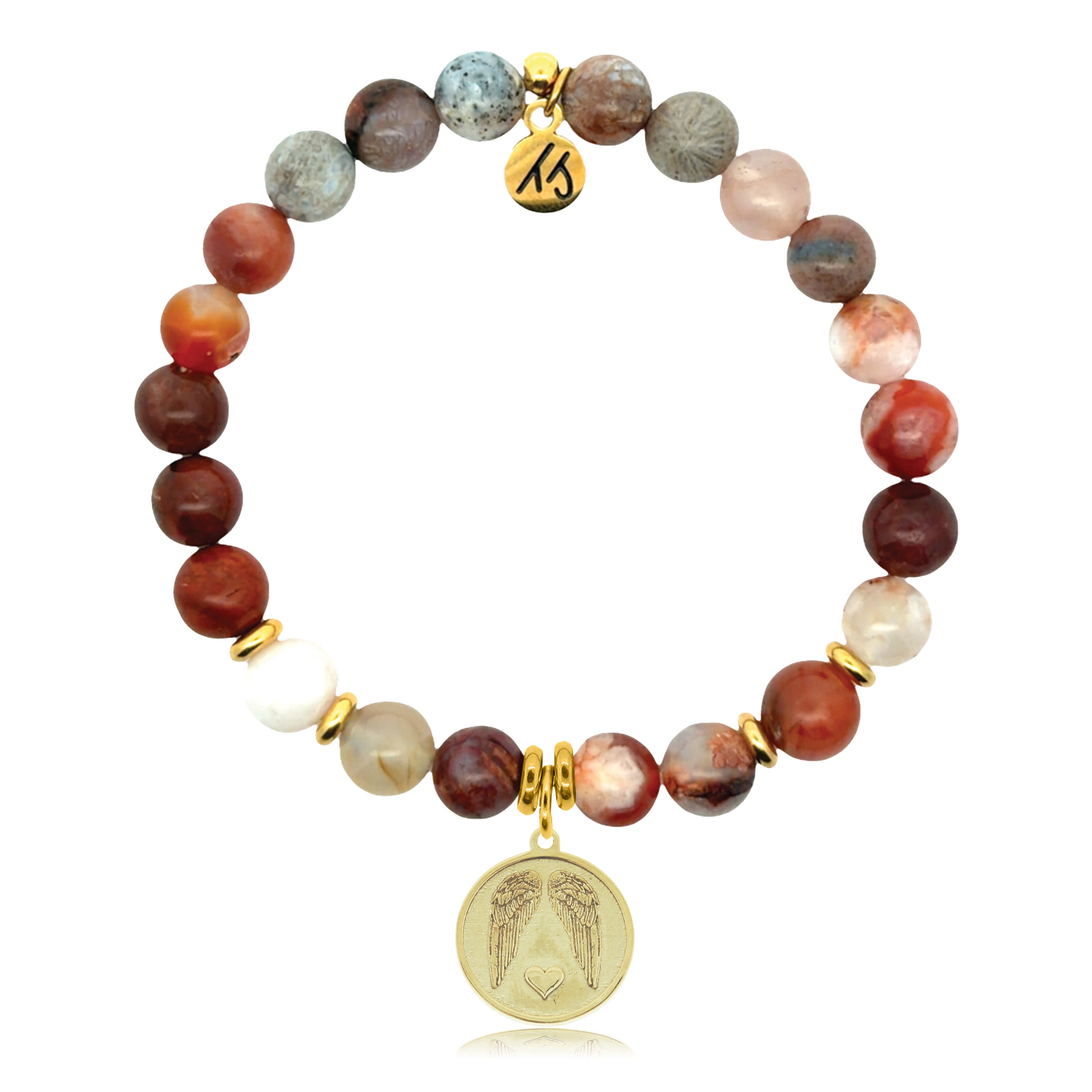 Gold Charm Collection - Sakura Agate Gemstone Bracelet with Guardian Gold Charm