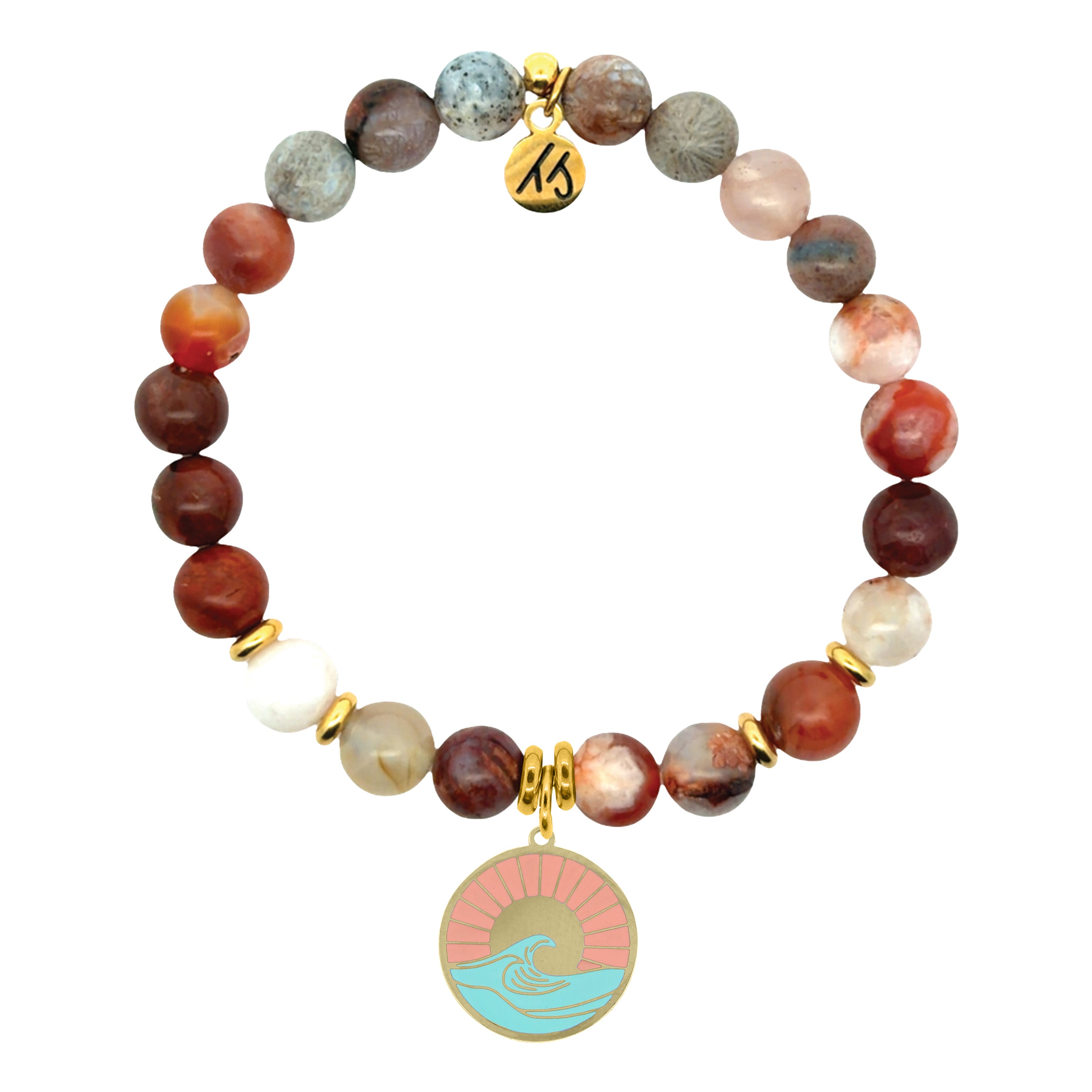 Gold Charm Collection - Sakura Agate Gemstone Bracelet with Paradise Enamel Gold Charm