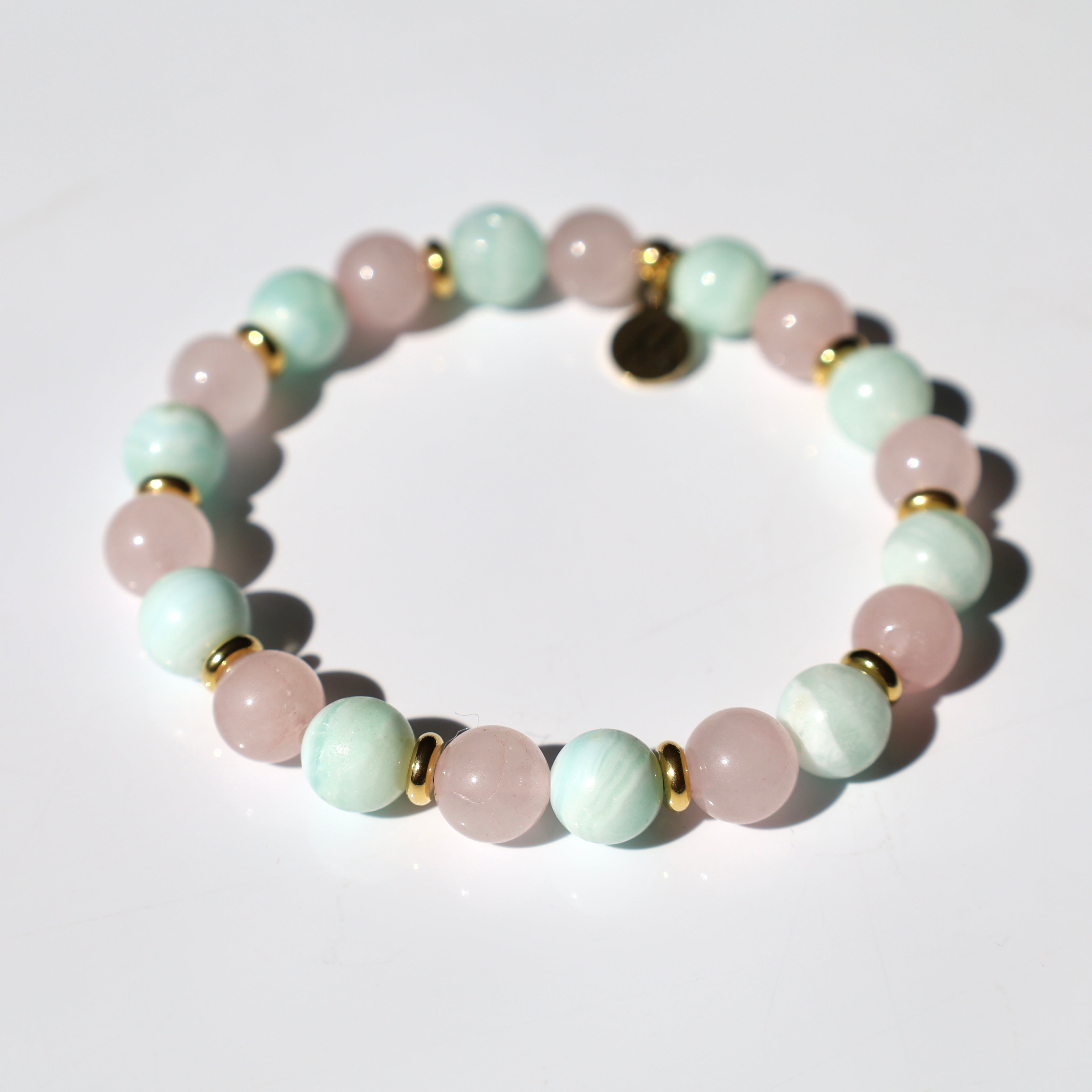 -8mm Rose Quartz and Hemimorphite Gemstone