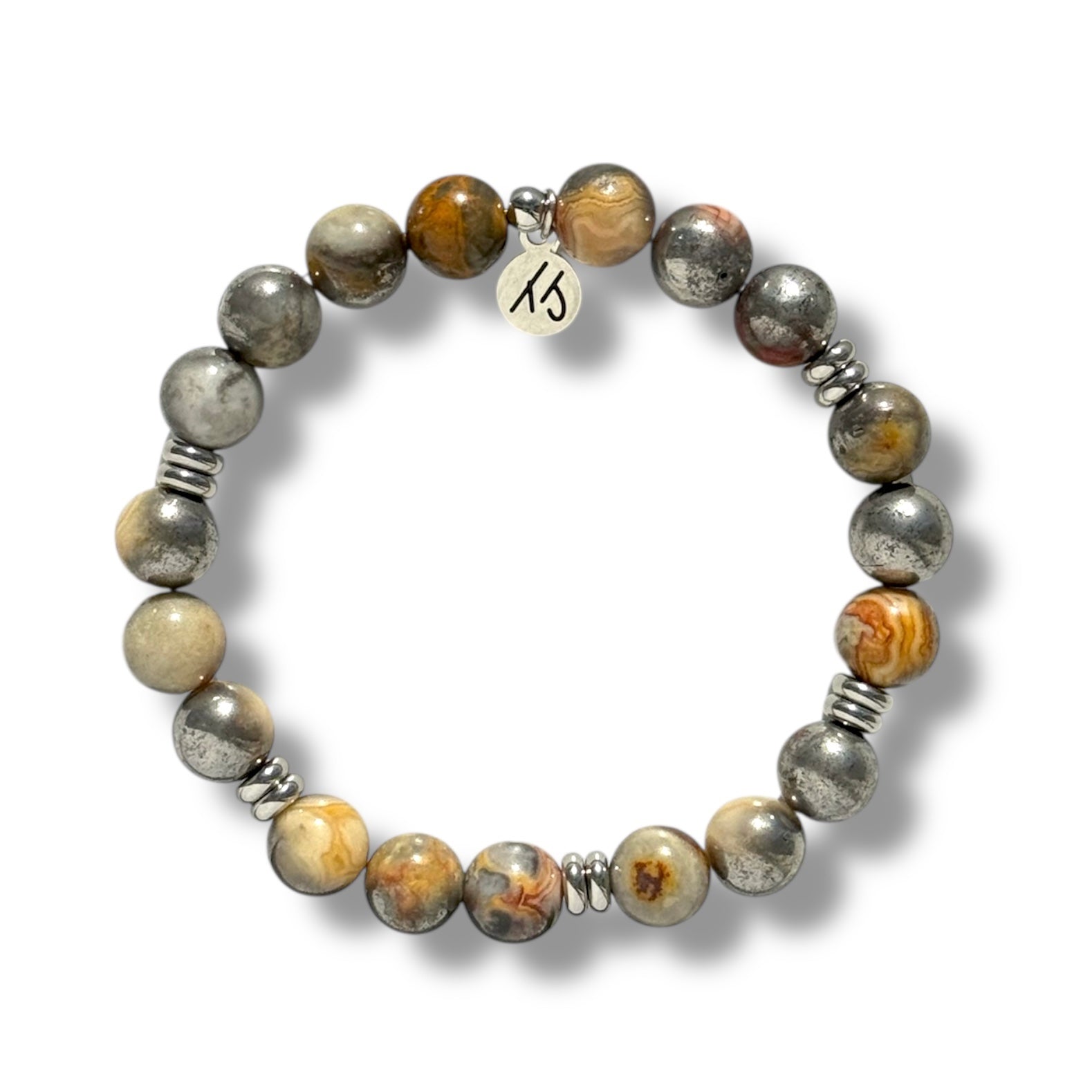 Handcrafted with Crazy Lace Agate featuring Silver accents.