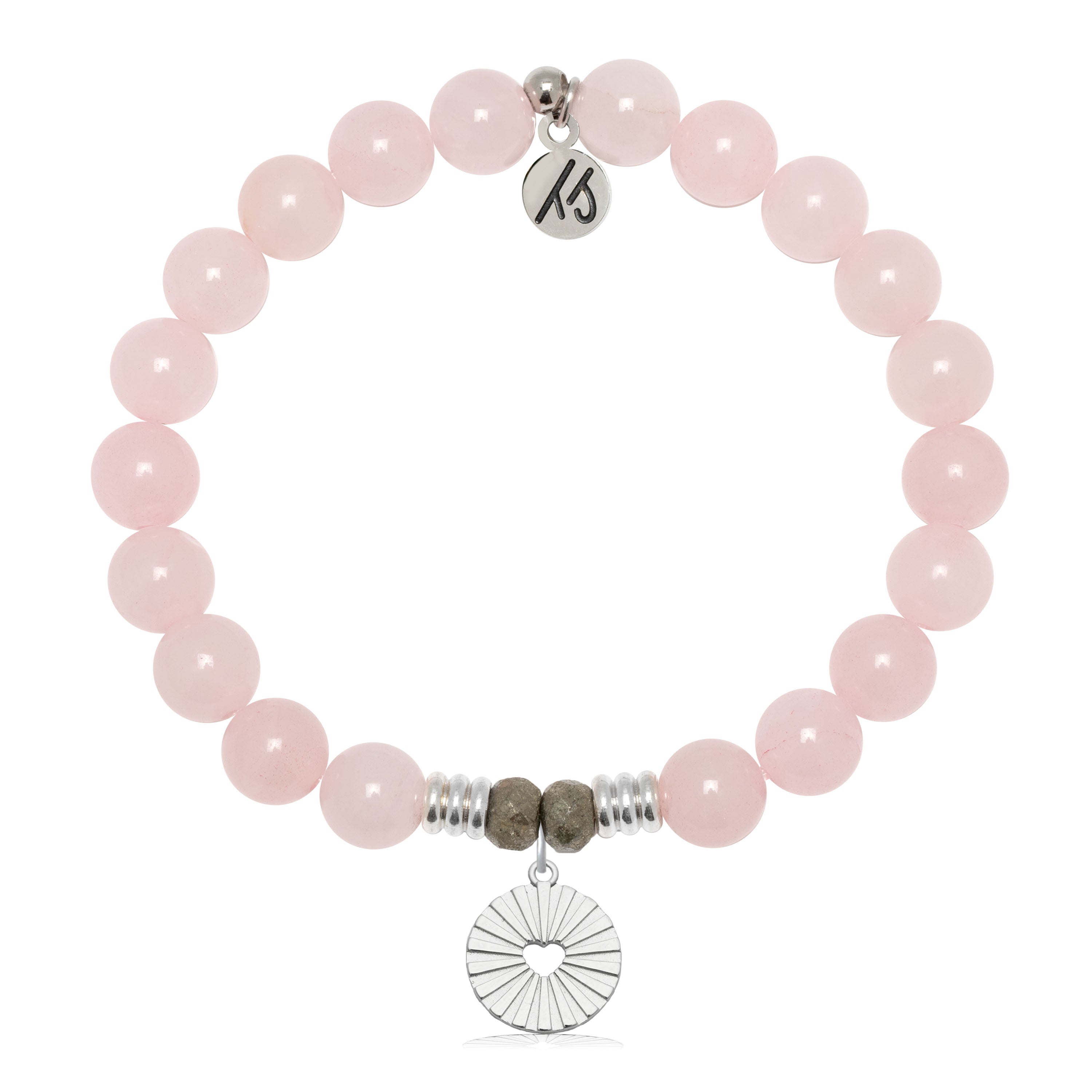 -Each beaded Rose Quartz charm bracelet is accented with two Pyrite stones worn to bring good luck and good fortune to the charm bracelet wearer.