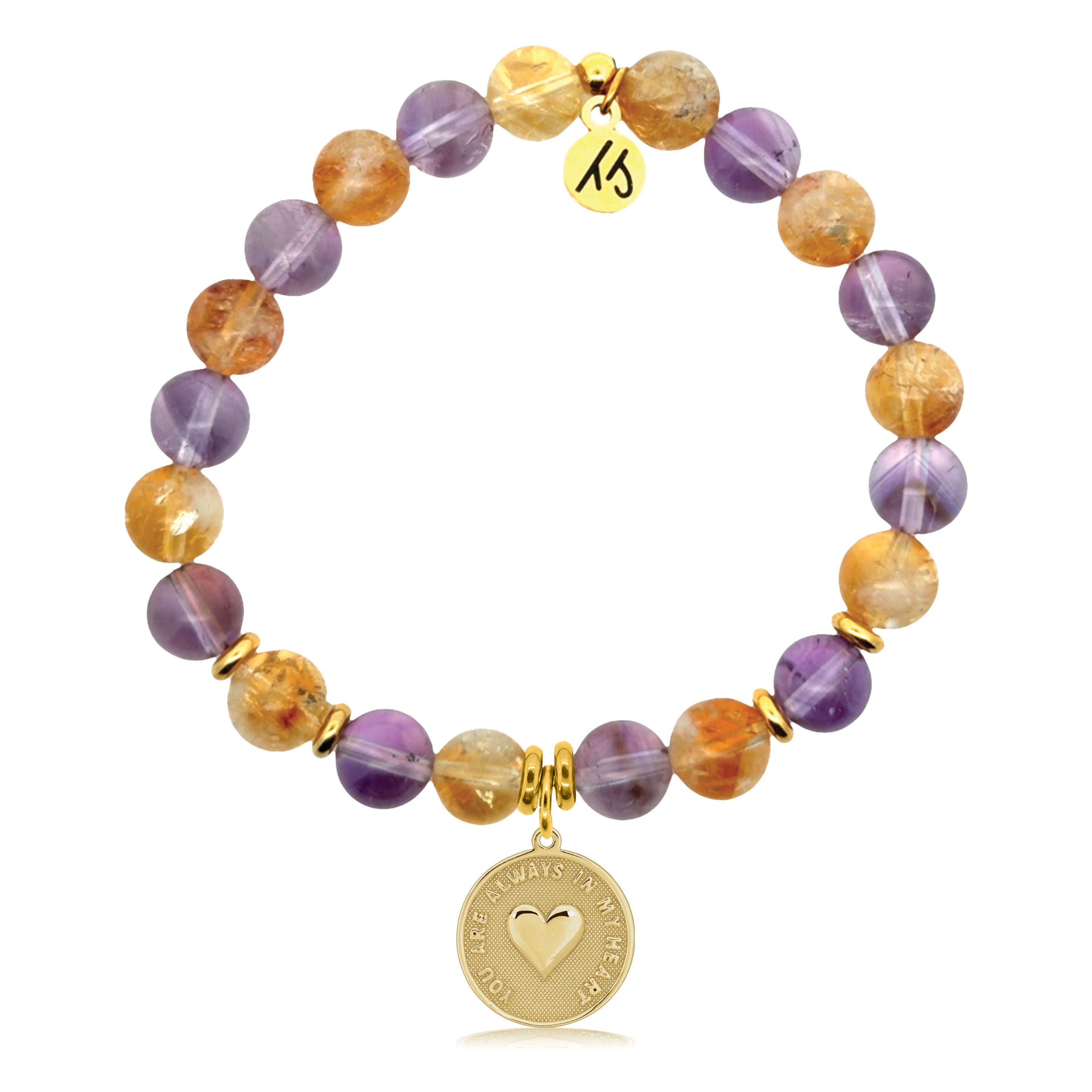 Gold Charm Collection - Amethyst Citrine Gemstone Bracelet with Always in my Heart Gold Charm