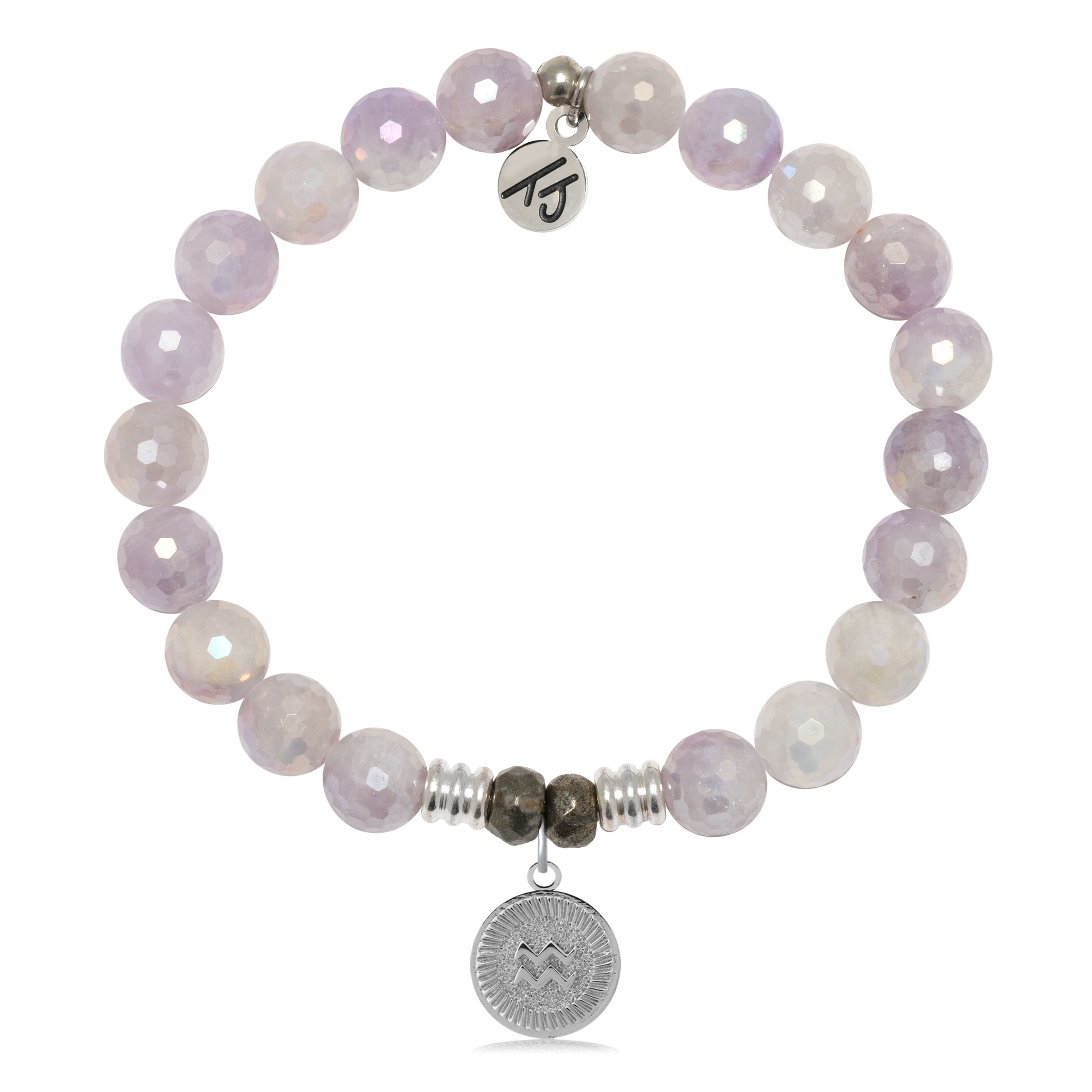 Zodiac Collection: Mauve Jade Gemstone Bracelet with Aquarius Sterling Silver Charm