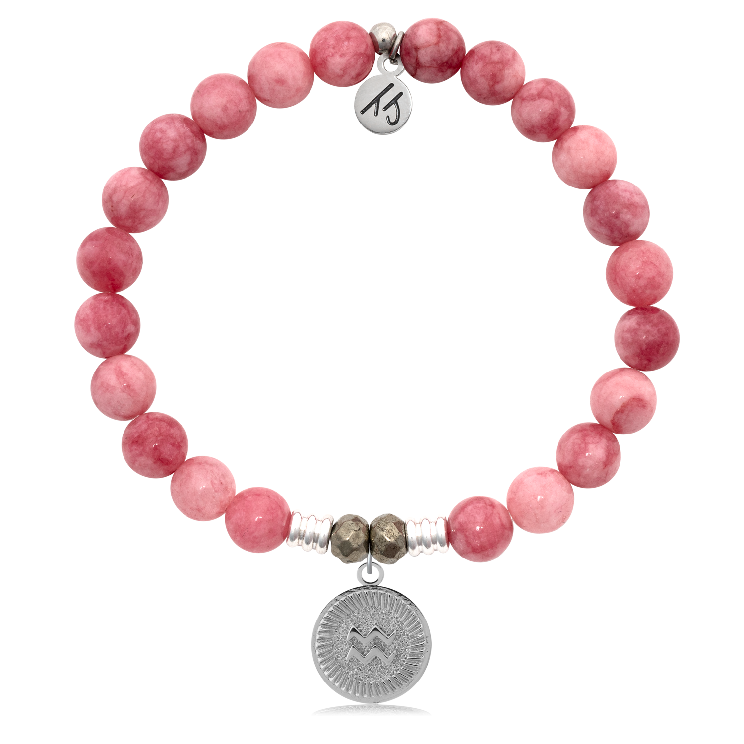 Zodiac Collection: Pink Jade Gemstone Bracelet with Aquarius Sterling Silver Charm