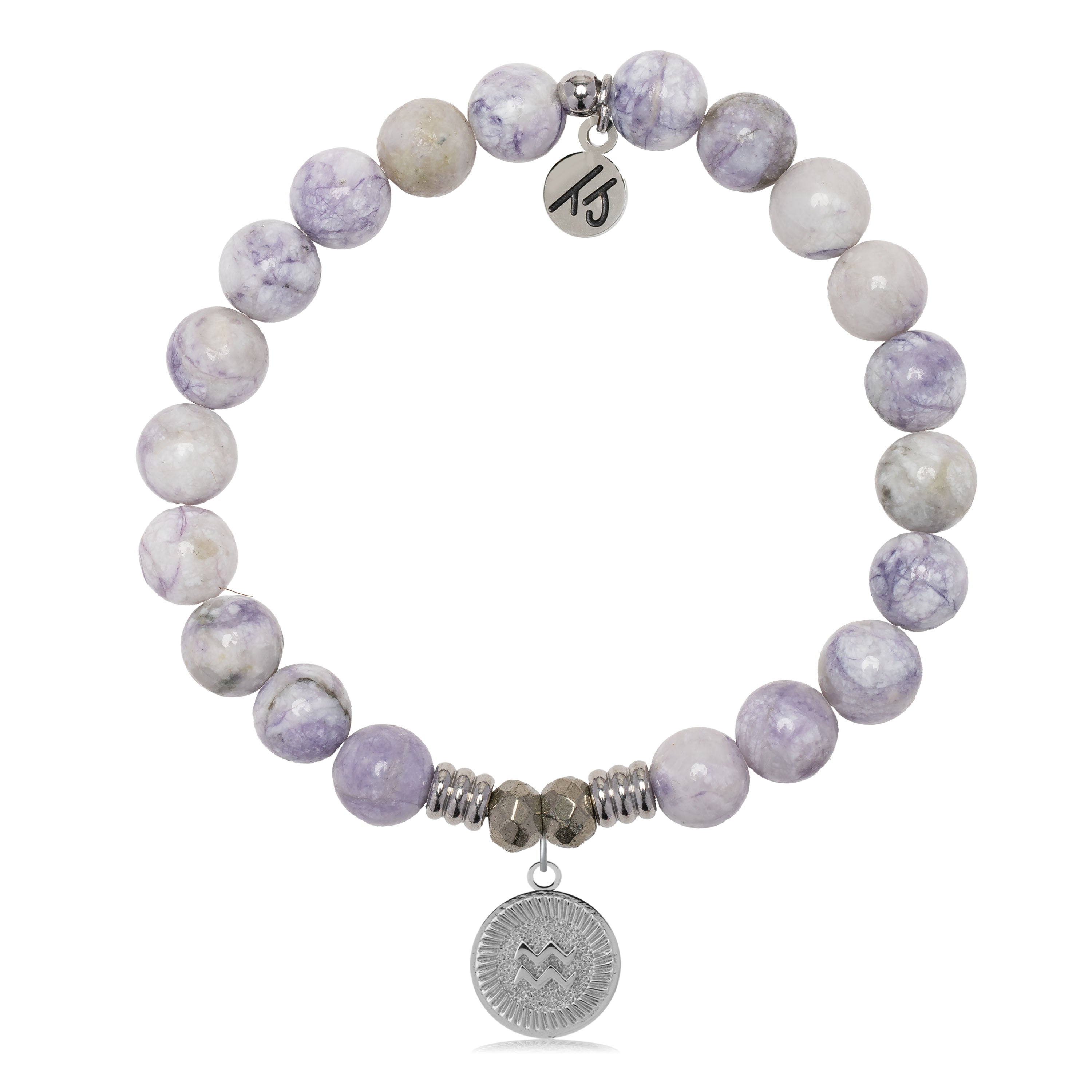 Zodiac Collection: Purple Turquoise Gemstone Bracelet with Aquarius Sterling Silver Charm