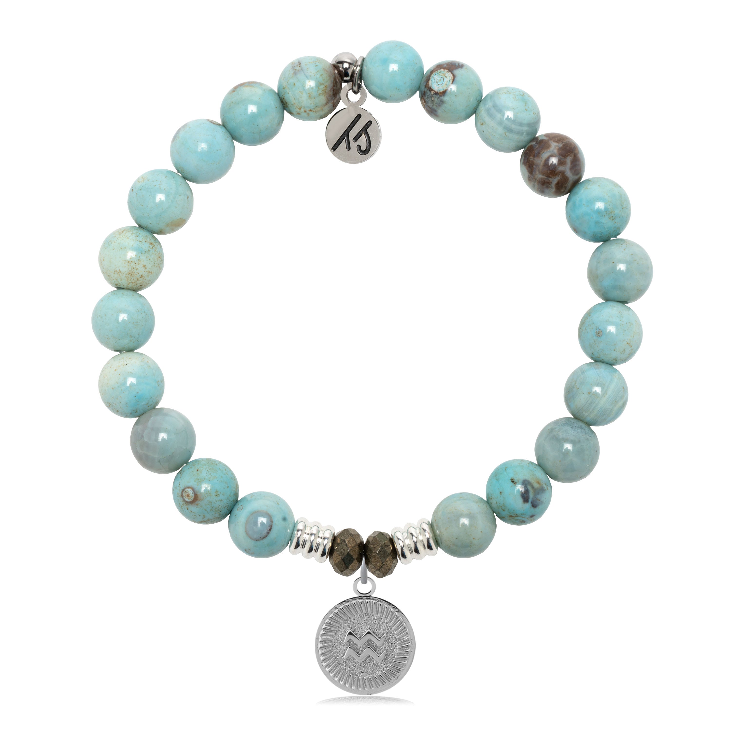 Zodiac Collection: Robins Egg Agate Gemstone Bracelet with Aquarius Sterling Silver Charm