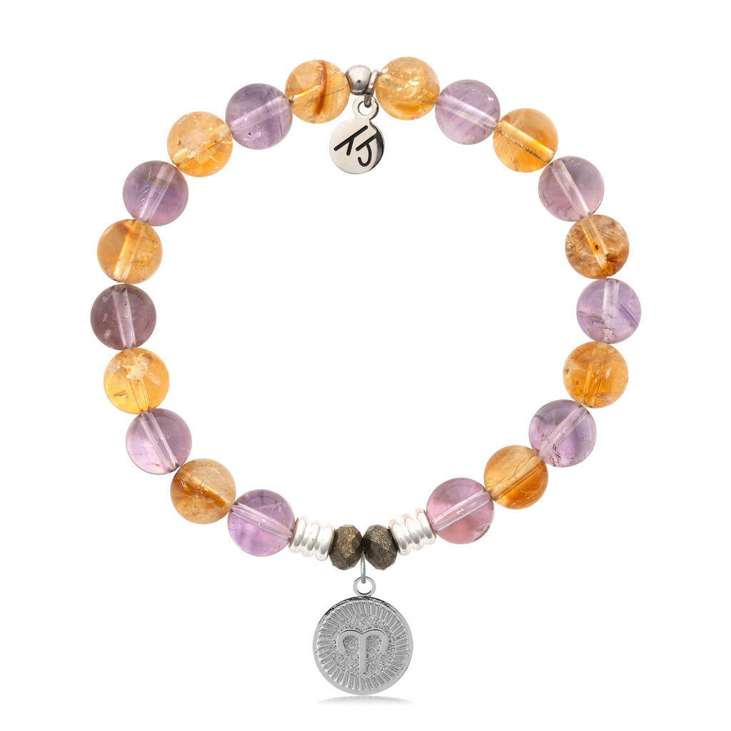 Zodiac Collection: Amethyst Citrine Gemstone Bracelet with Aries Sterling Silver Charm