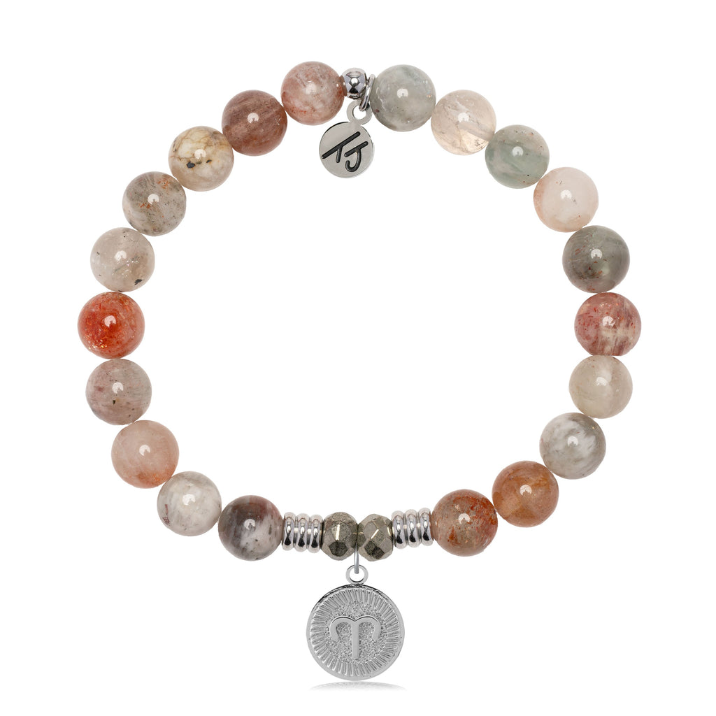 Zodiac Collection: Moonstone Gemstone Bracelet with Aries Sterling Silver Charm
