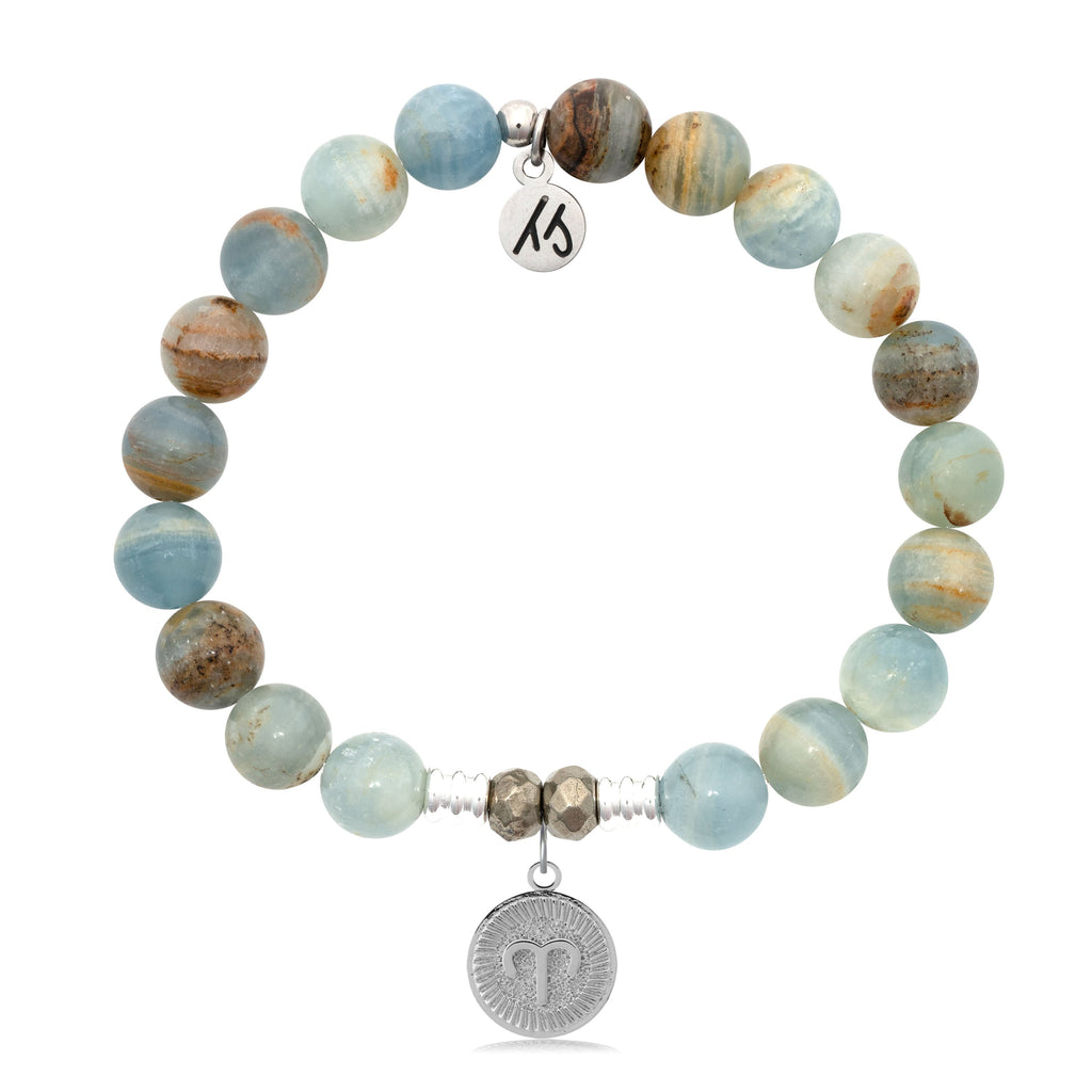 Zodiac Collection: Blue Calcite Gemstone Bracelet with Aries Sterling Silver Charm