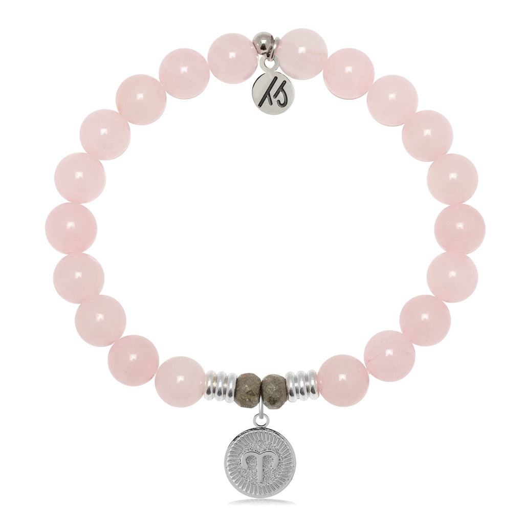 Zodiac Collection: Rose Quartz Gemstone Bracelet with Aries Sterling Silver Charm