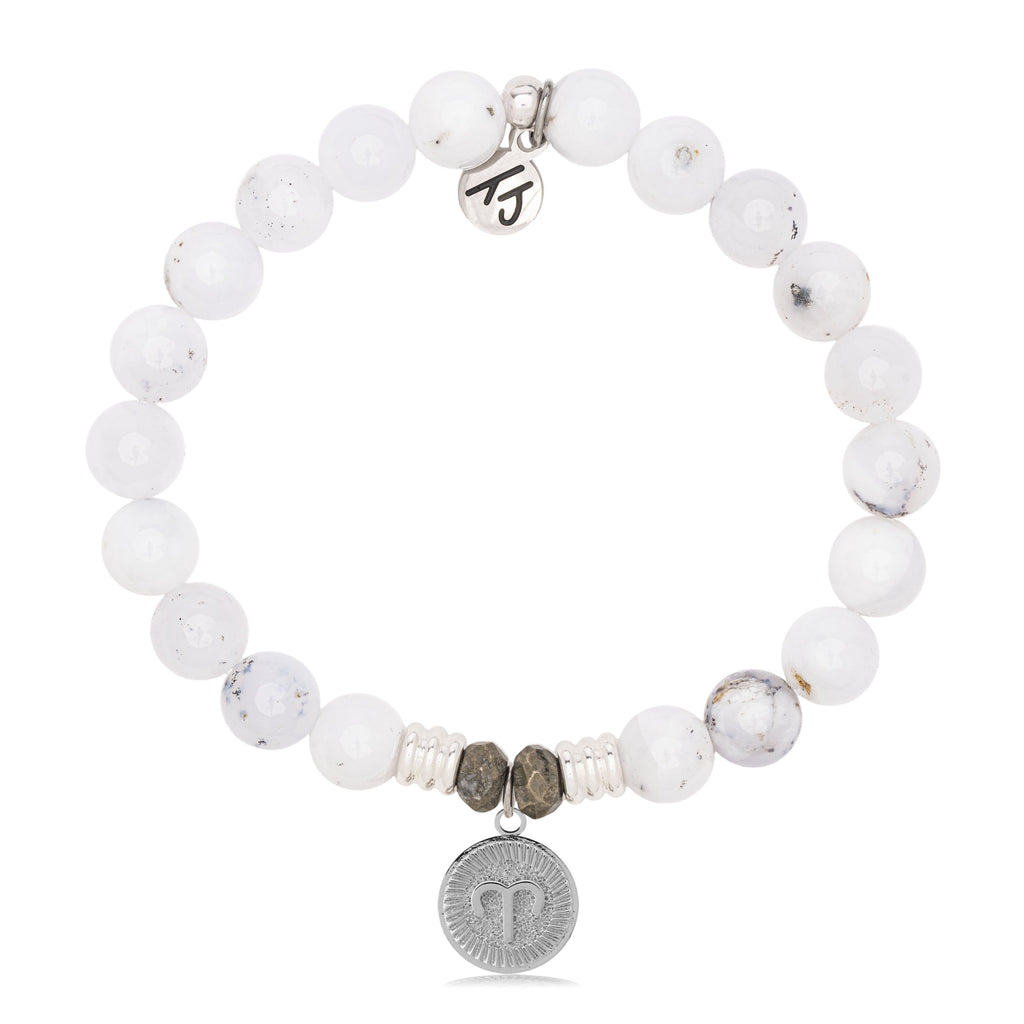 Zodiac Collection: White Chalcedony Gemstone Bracelet with Aries Sterling Silver Charm