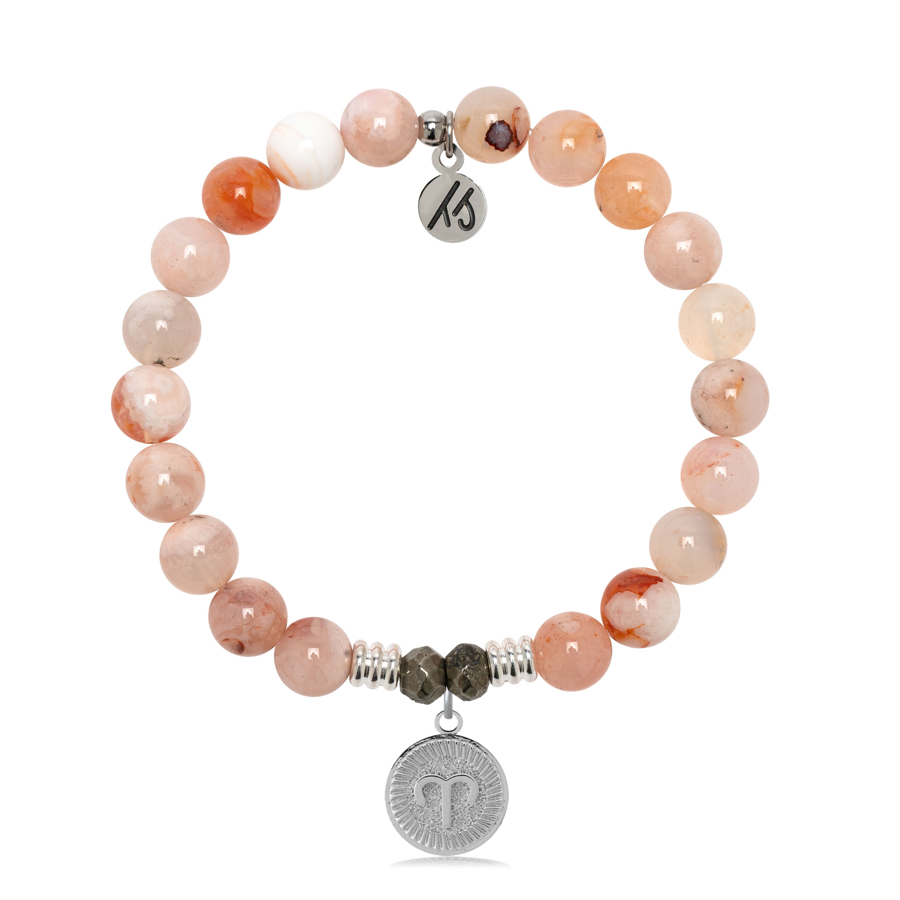 Zodiac Collection: Sakura Agate Gemstone Bracelet with Aries Sterling Silver Charm