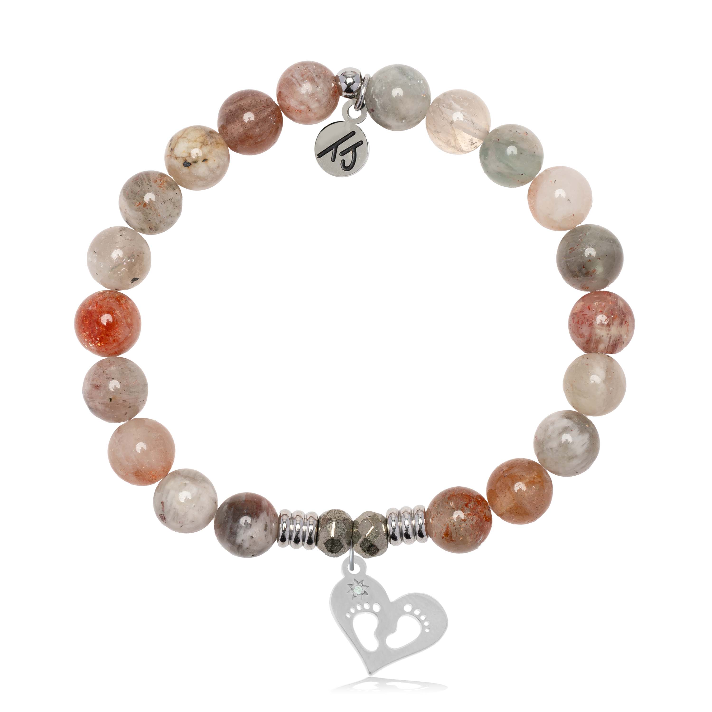 Arusha Agate Gemstone Bracelet with Baby Feet Sterling Silver Charm