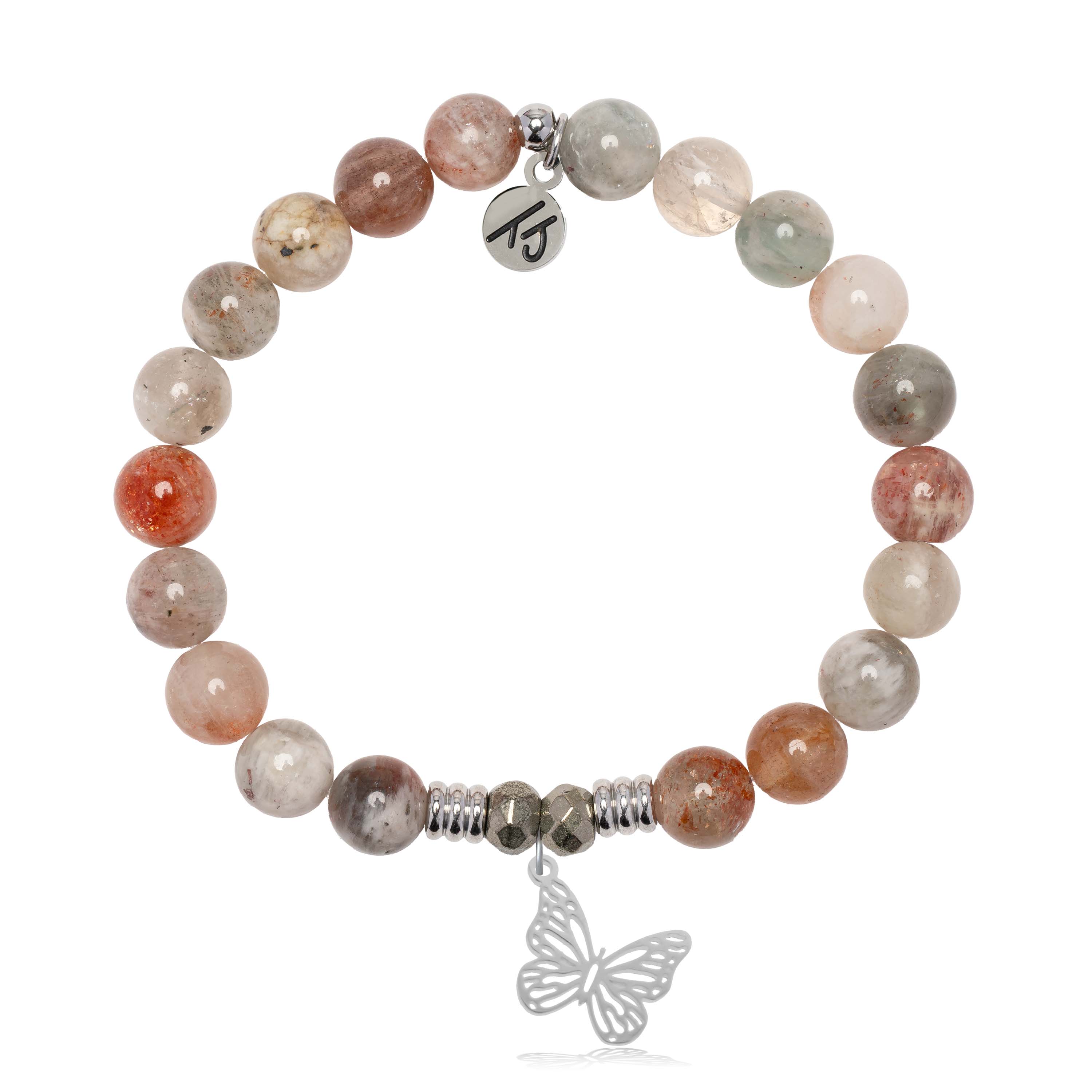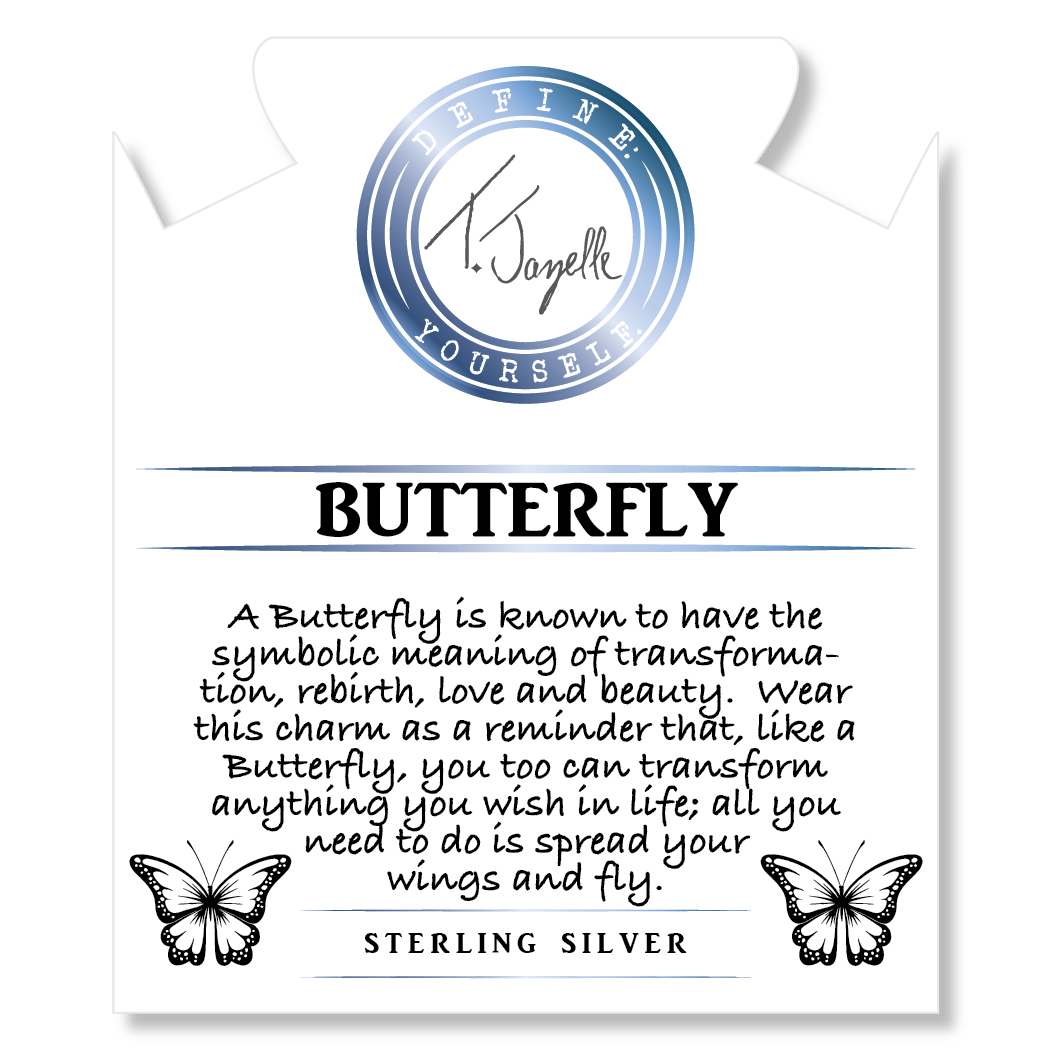 Arusha Agate Gemstone Bracelet with Butterfly Sterling Silver Charm