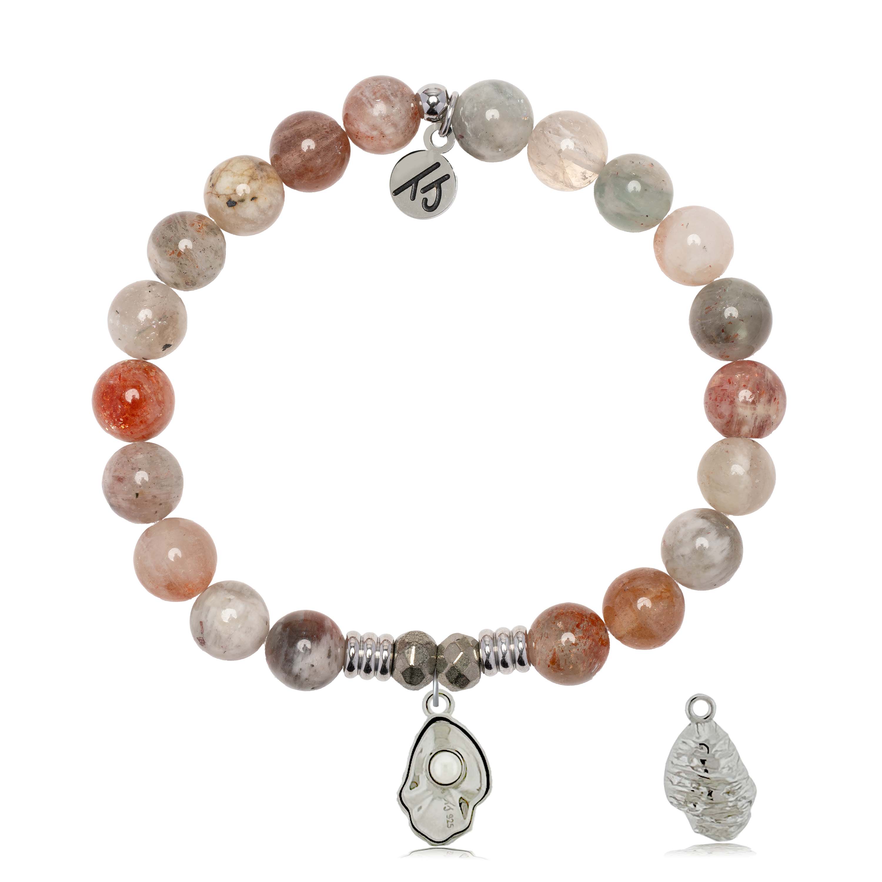 Arusha Agate Gemstone Bracelet with Oyster Sterling Silver Charm