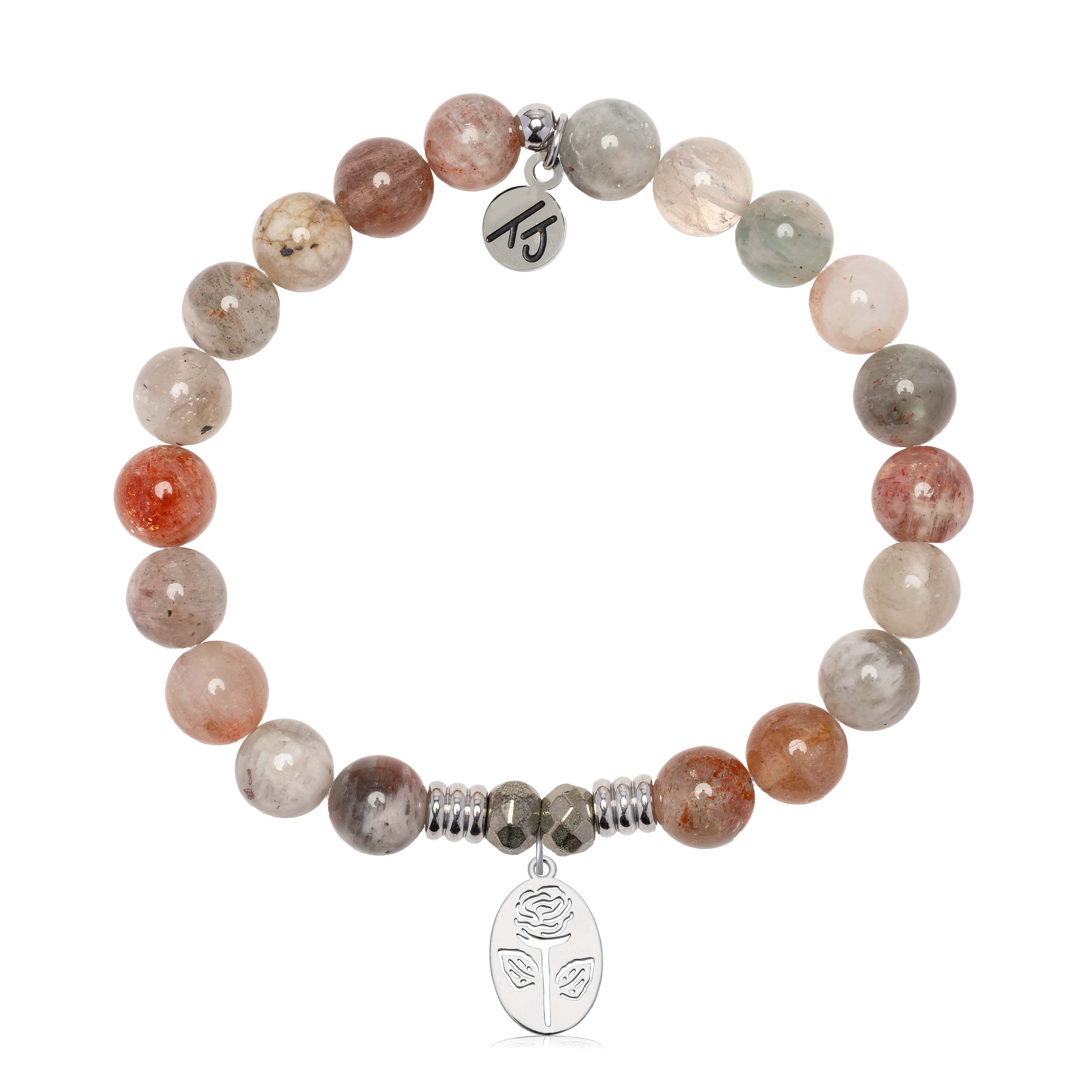 Arusha Agate Gemstone Bracelet with Rose Cutout Sterling Silver Charm