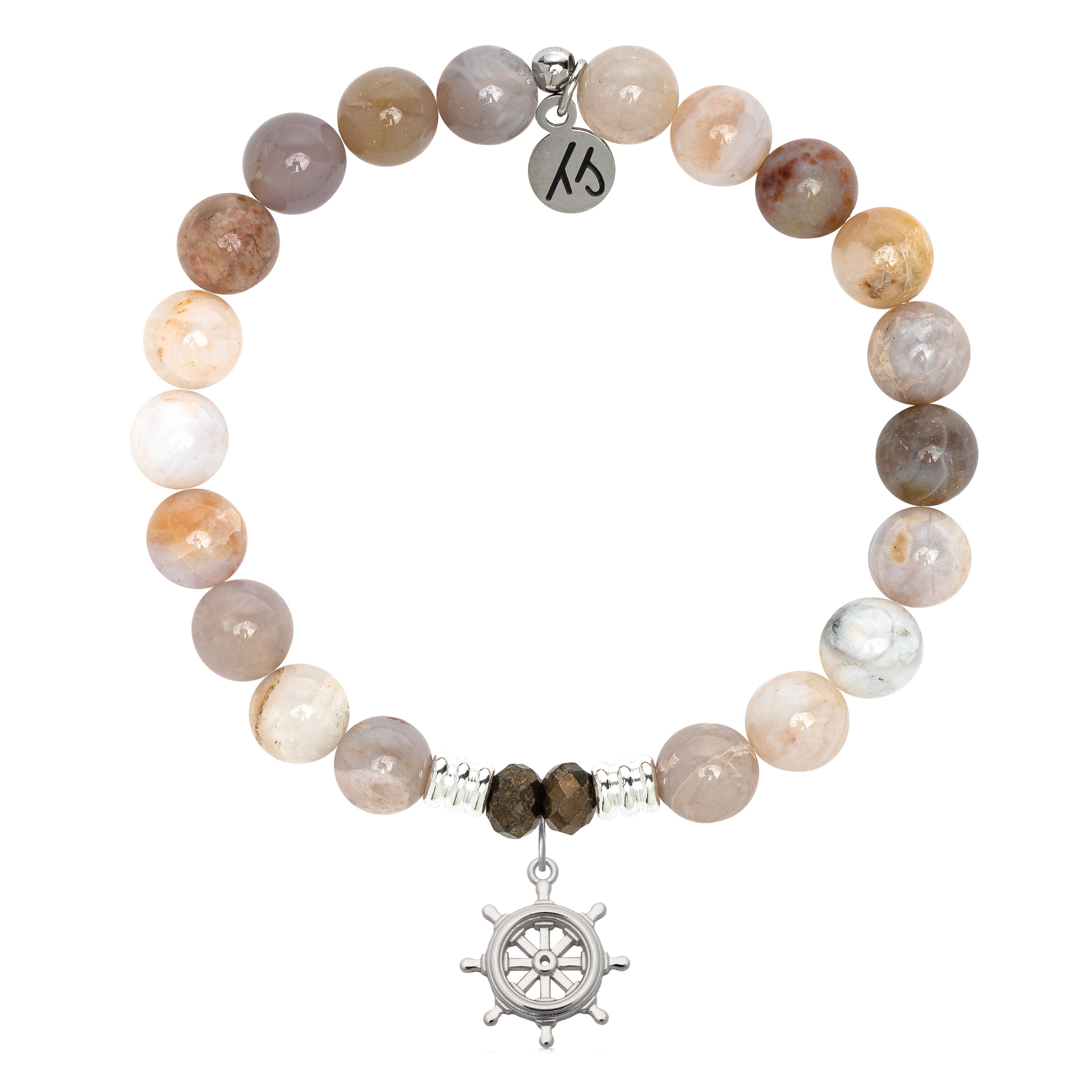 Australian Agate Gemstone Bracelet with Captain Wheel Sterling Silver Charm
