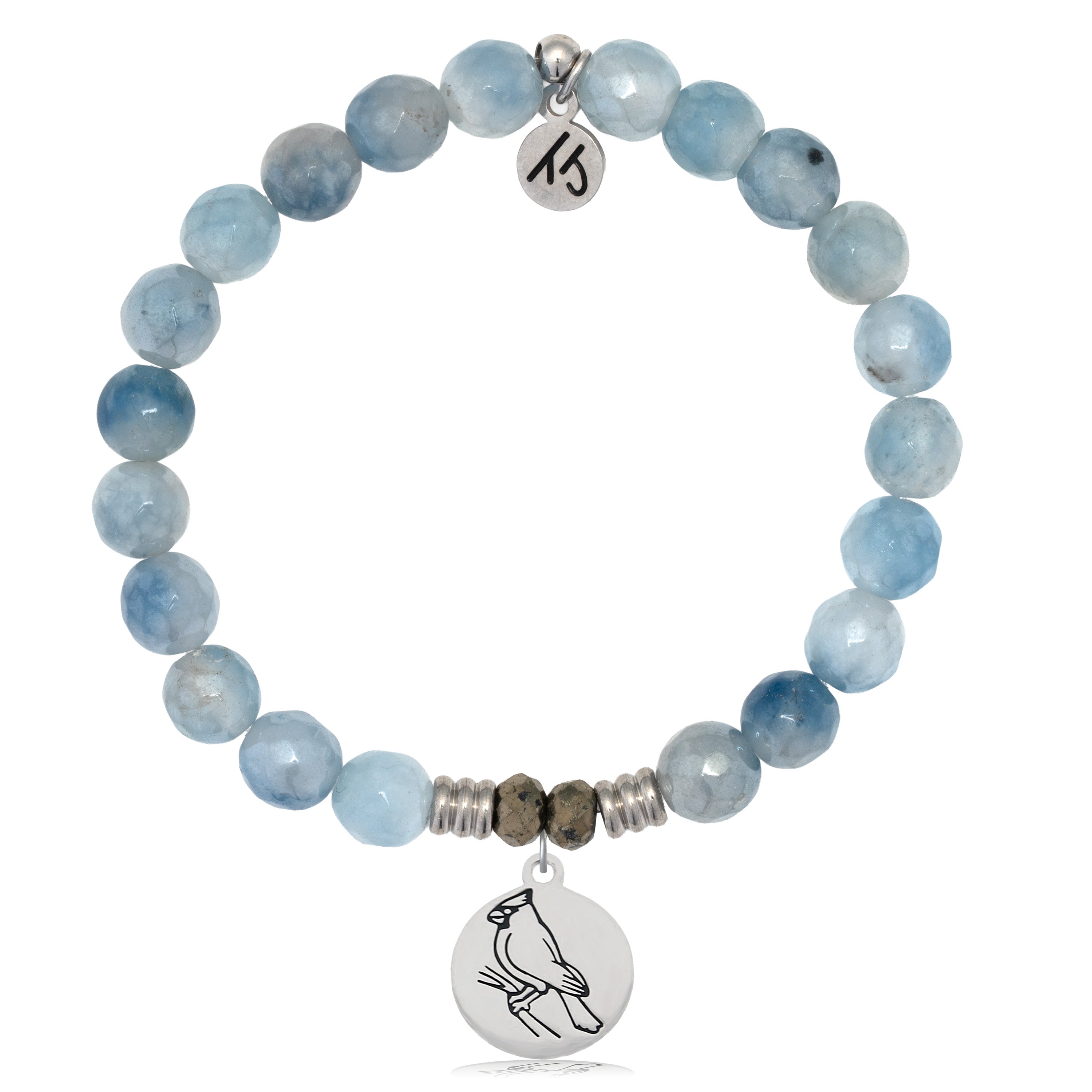 Aquamarine Jade Gemstone Bracelet with Cardinal Sterling Silver Charm