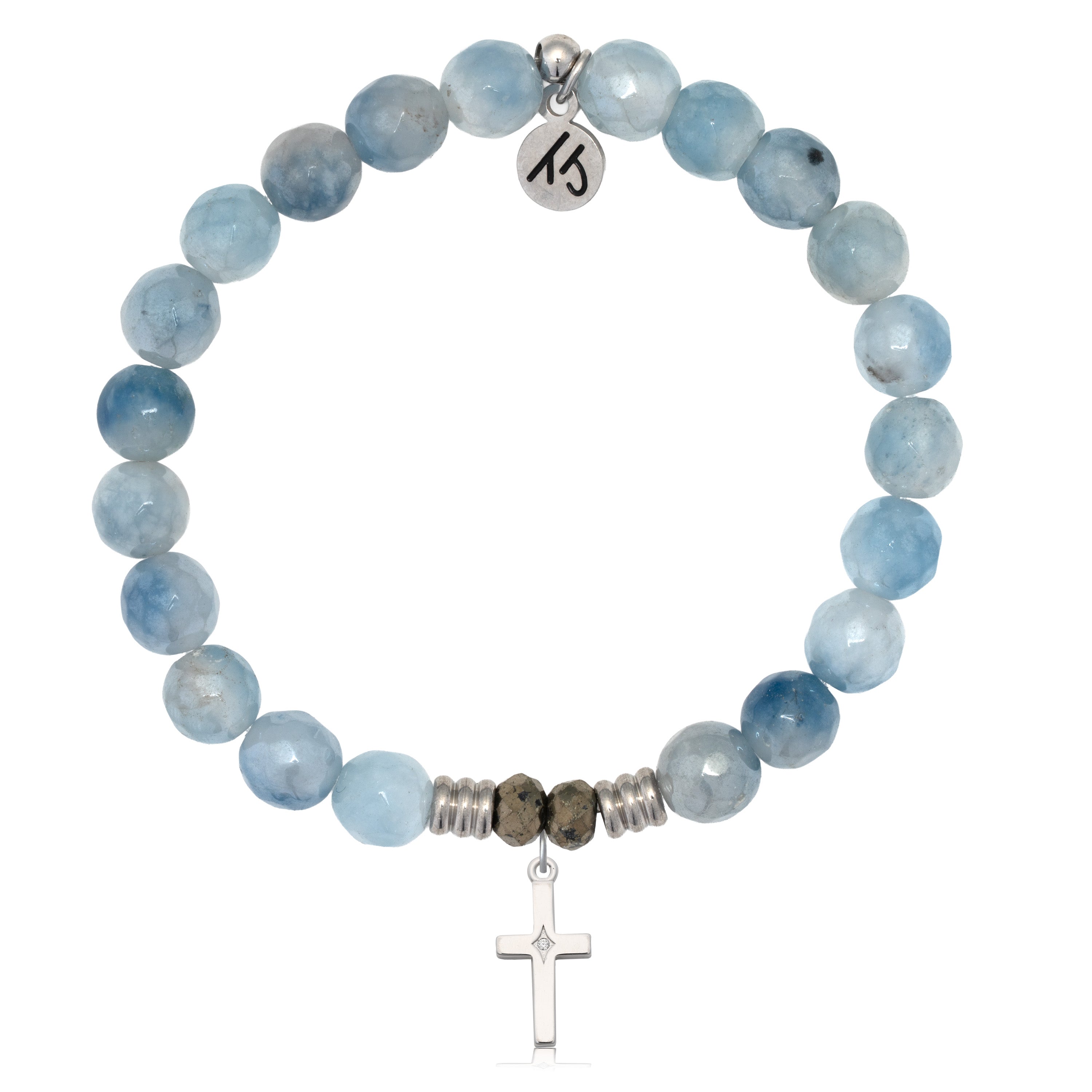 Aquamarine Jade Gemstone Bracelet with Cross CZ Sterling Silver Charm
