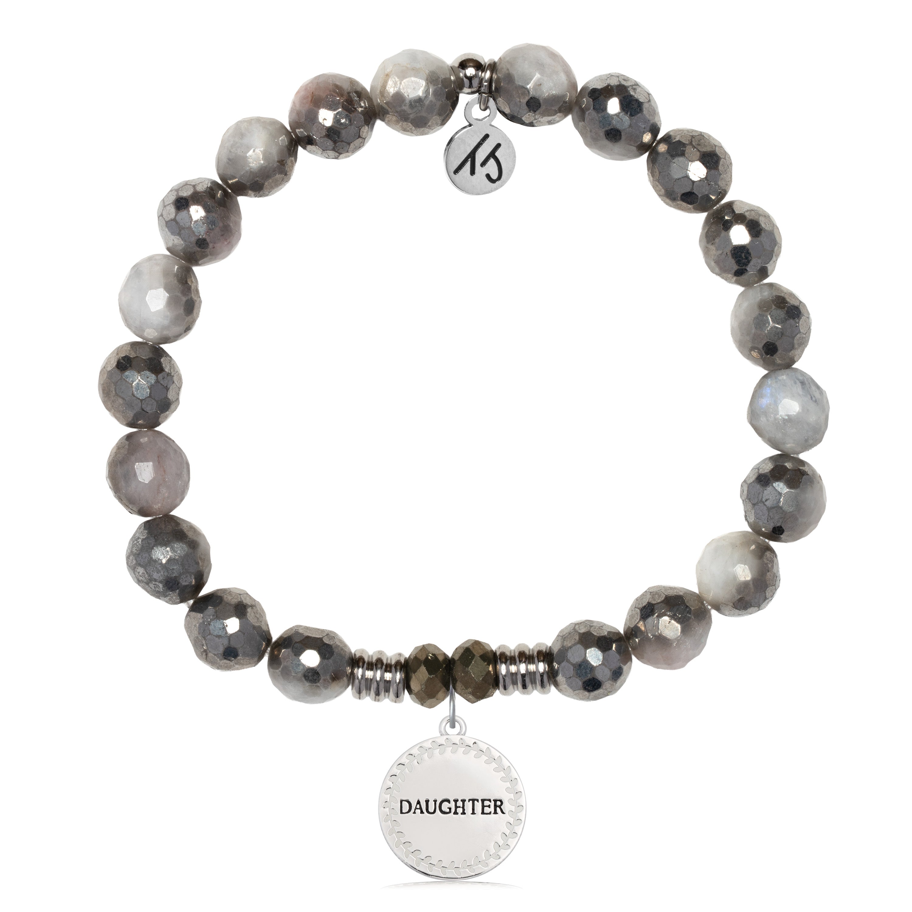 Silver Dipped White Moonstone Gemstone Bracelet with Endless Love Daughter Sterling Silver Charm