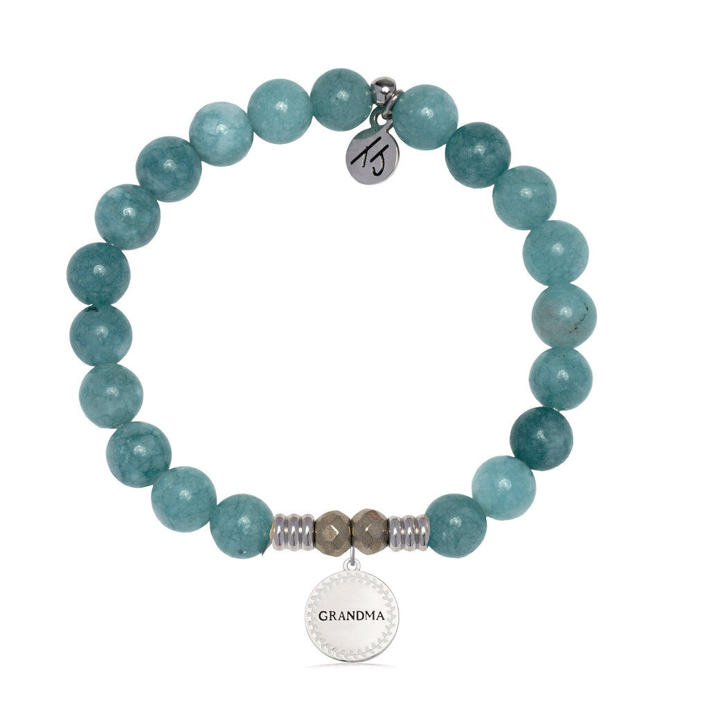 Mountain Blue Jade Gemstone Bracelet with Endless Love Grandma Sterling Silver Charm