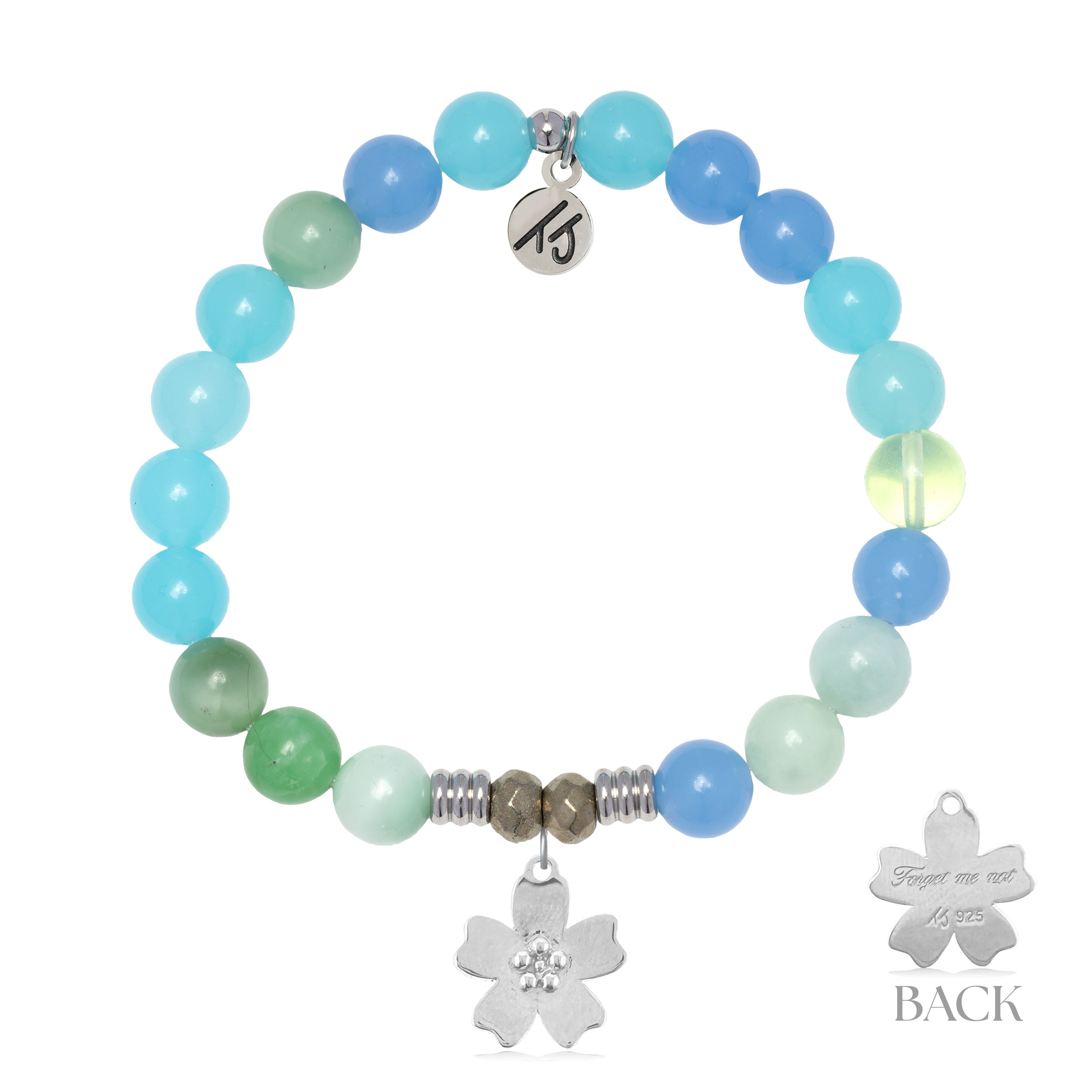 Multi Blue Jade Gemstone Bracelet with Forget Me Not Sterling Silver Charm