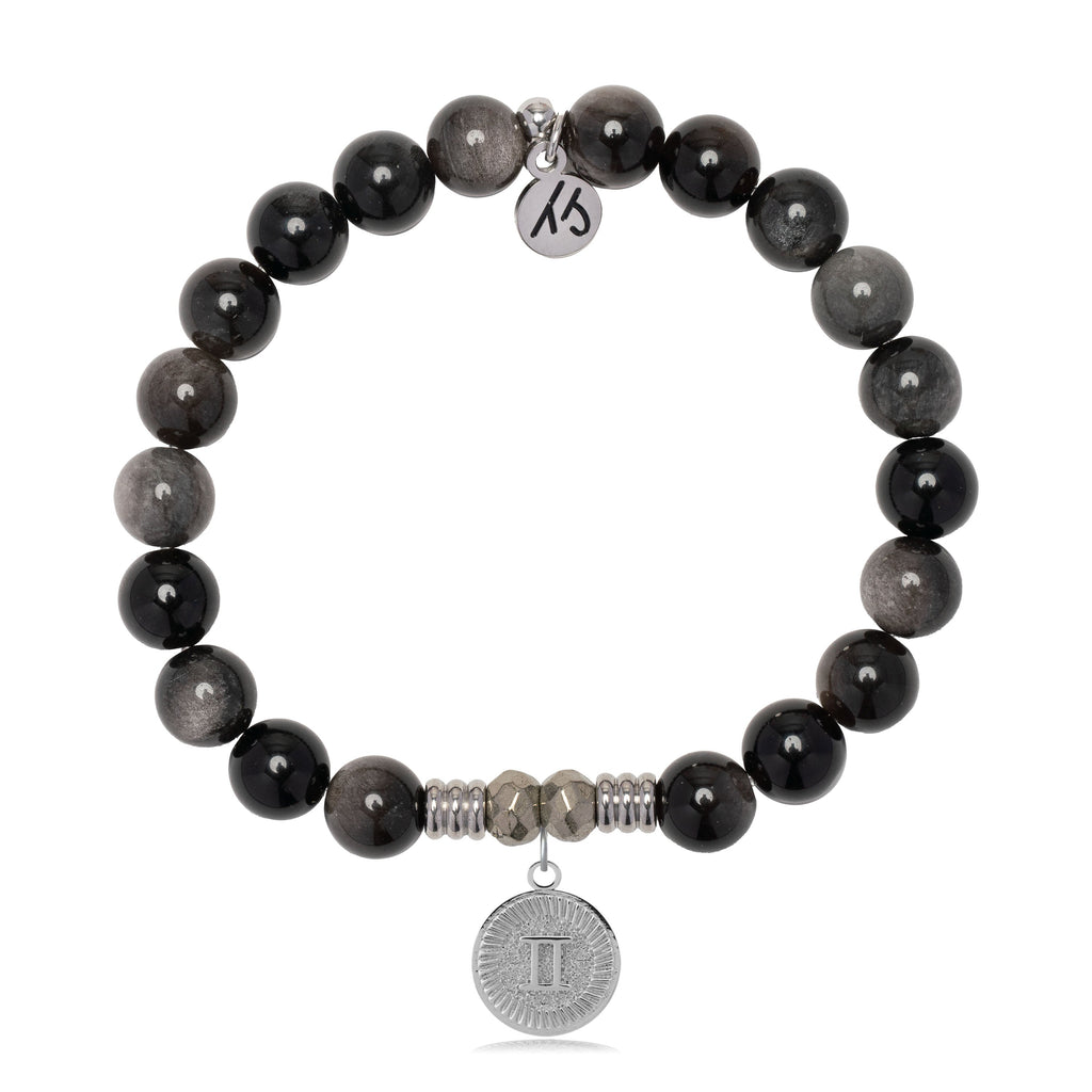 Zodiac Collection: Silver Obsidian Gemstone Bracelet with Gemini Sterling Silver Charm