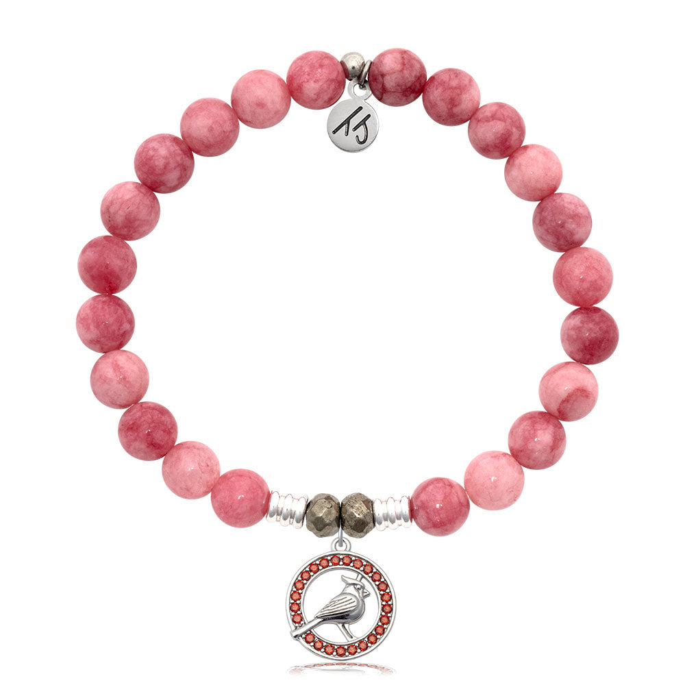 Pink Jade Gemstone Bracelet with Garnet Cardinal CZ Sterling Silver Charm