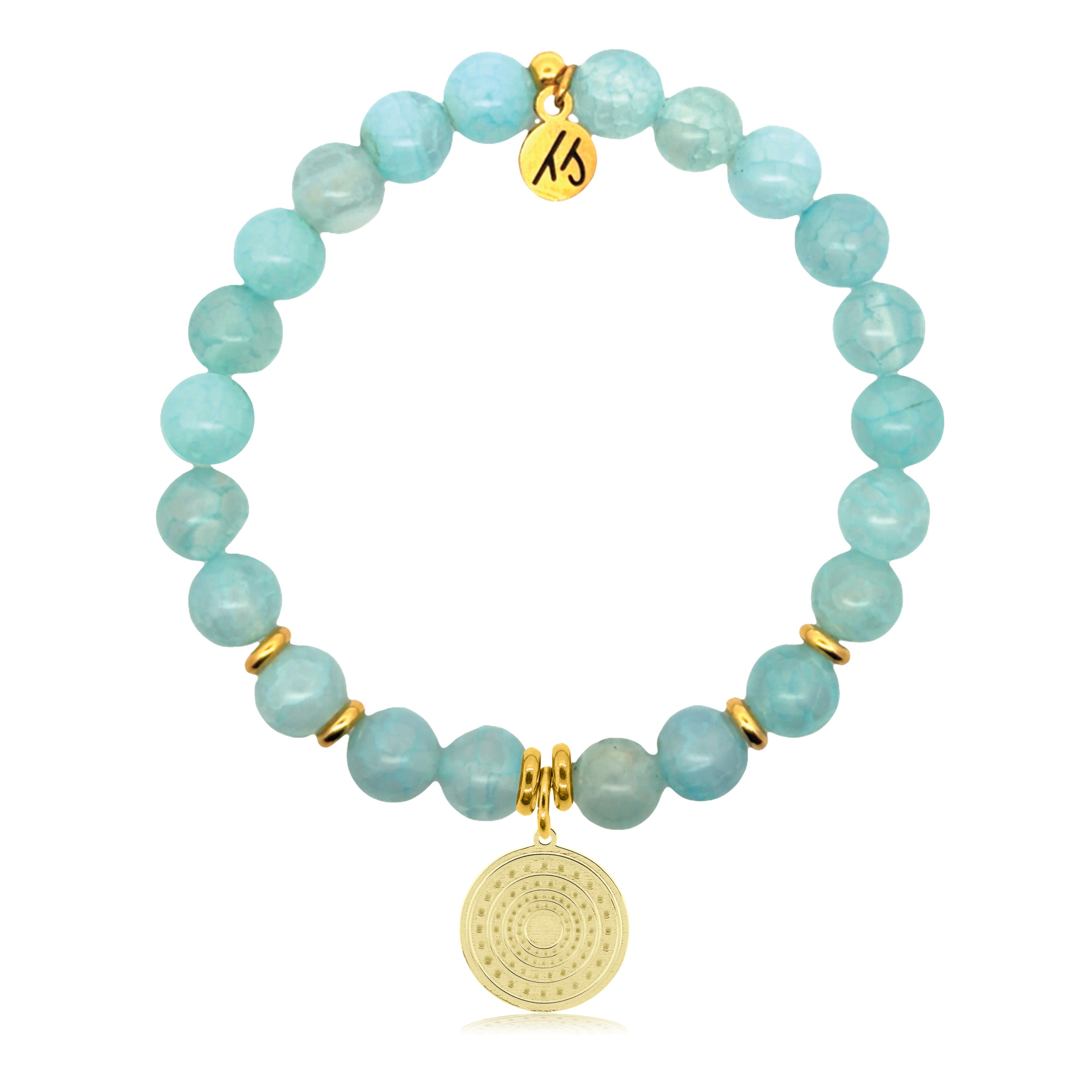 Gold Charm Collection - Aqua Fire Agate Gemstone Bracelet with Family Circle Gold Charm