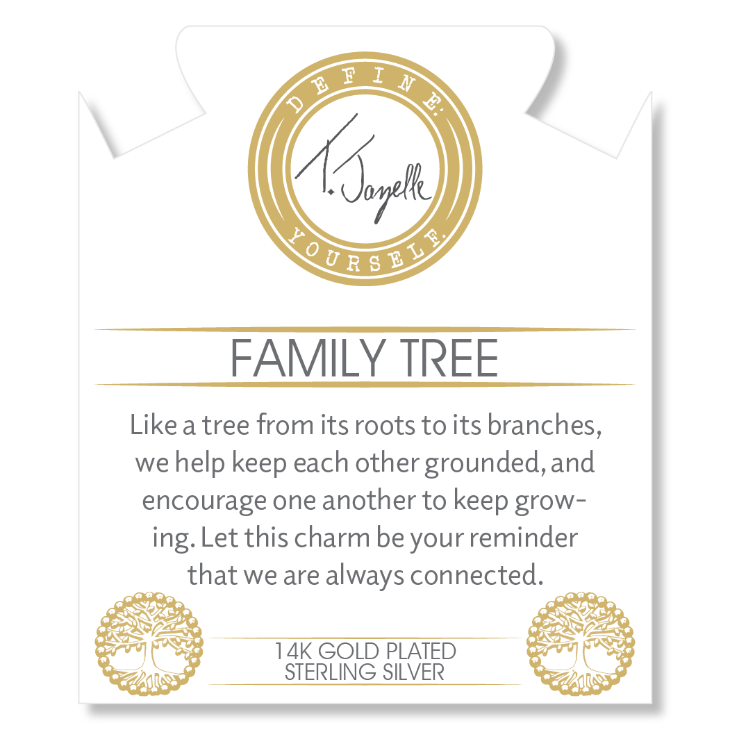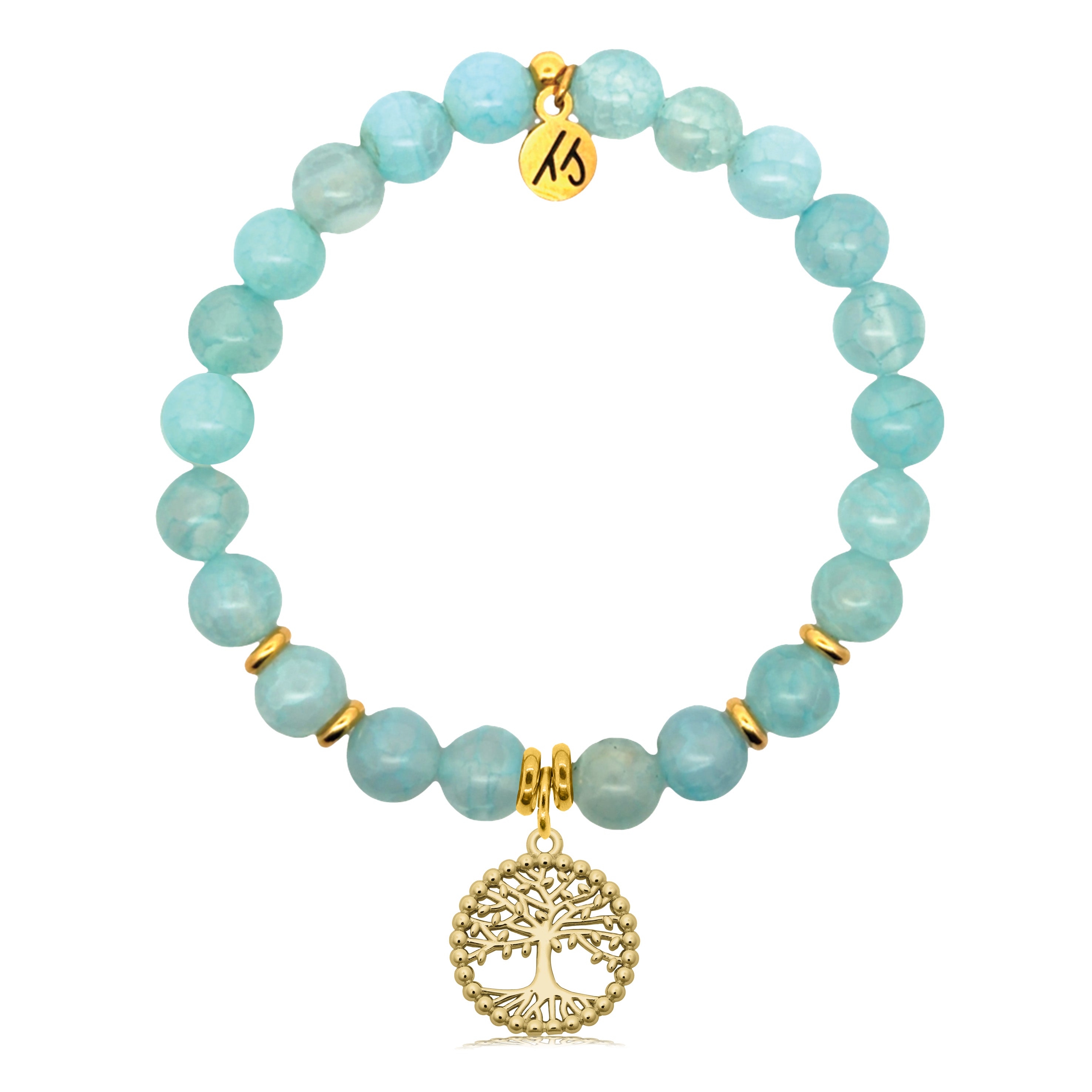 Gold Charm Collection - Aqua Fire Agate Gemstone Bracelet with Family Tree Gold Charm