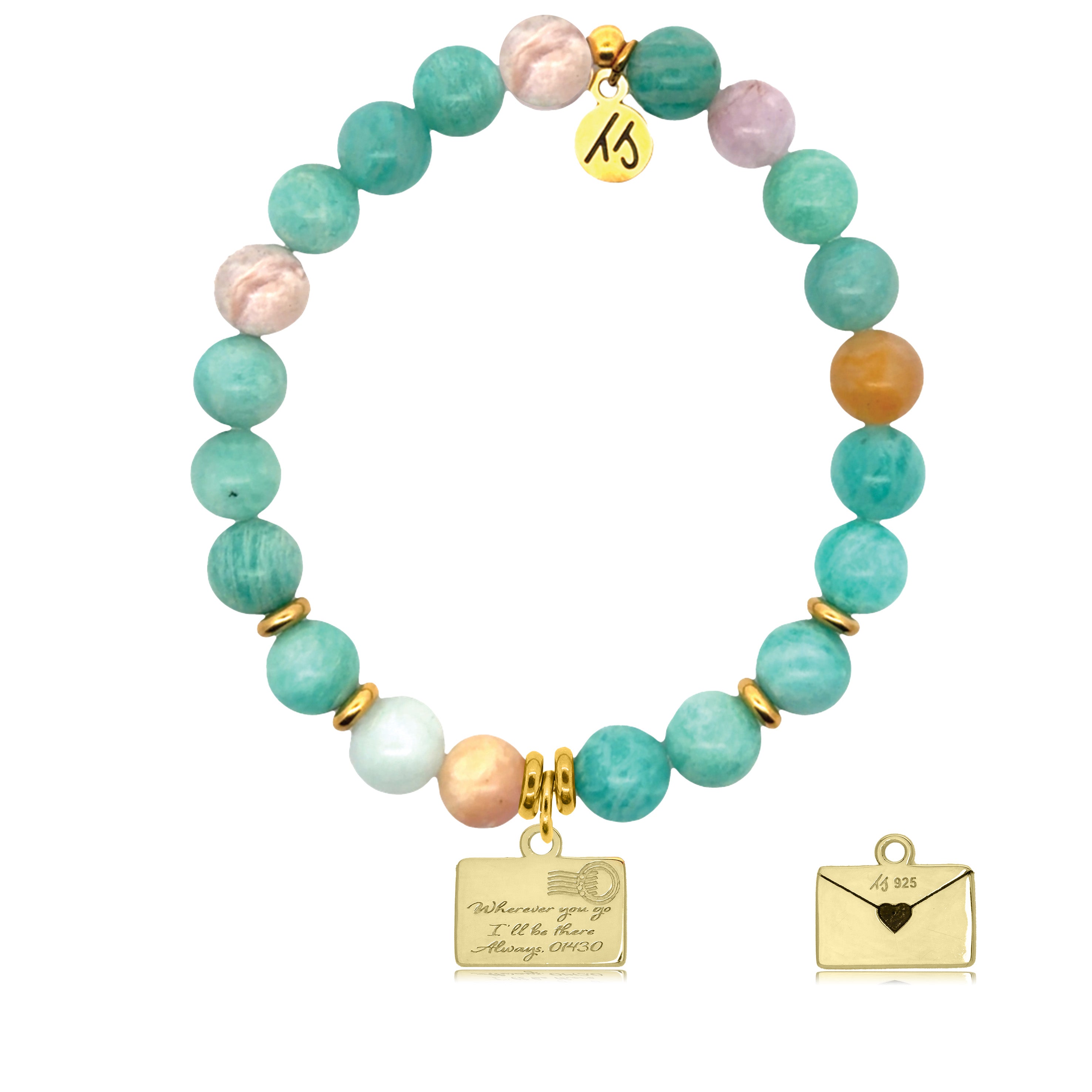 Gold Charm Collection - Multi Amazonite Gemstone Bracelet with Love Letter Gold Charm