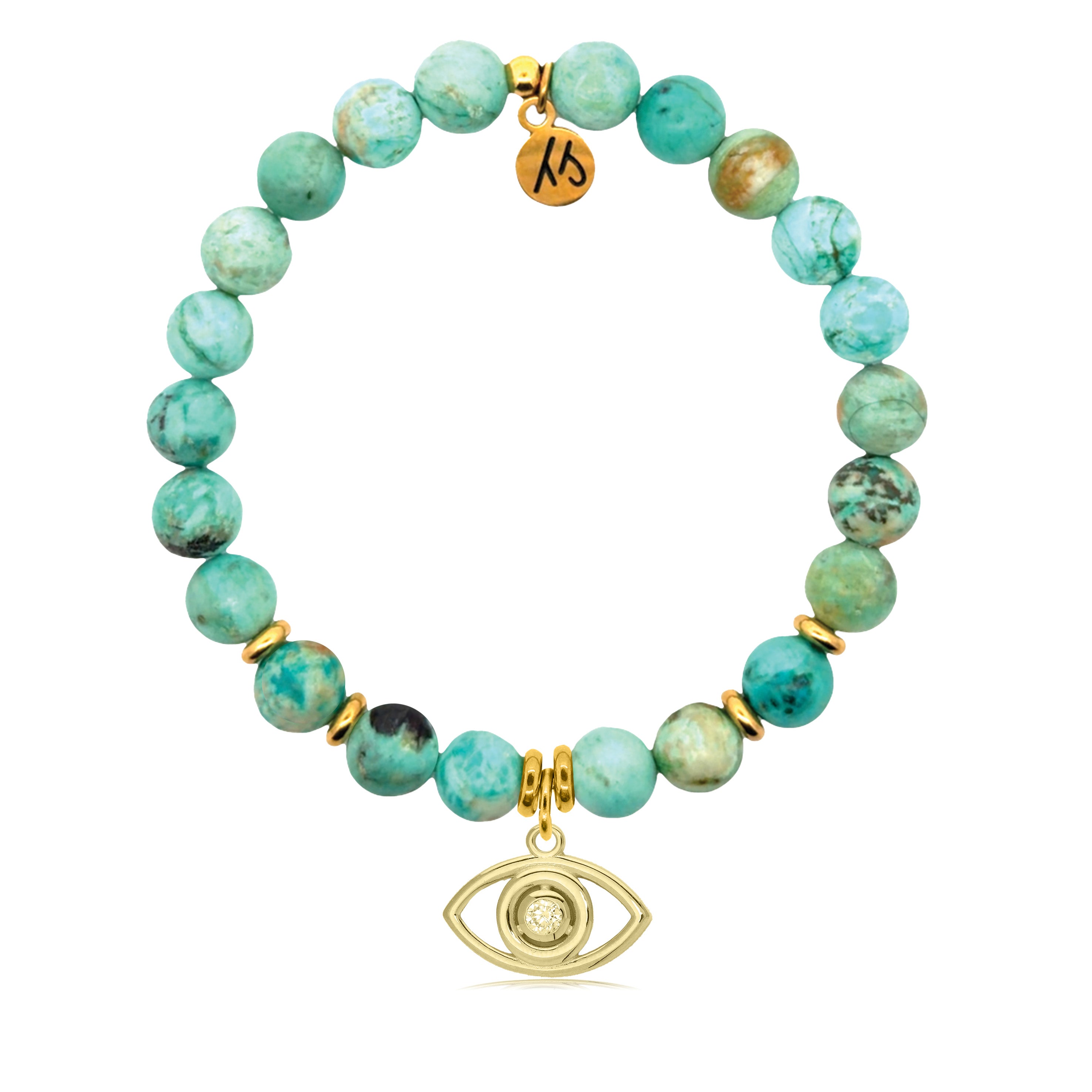 Gold Charm Collection - Peruvian Turquoise Gemstone Bracelet with Evil Eye Gold Charm