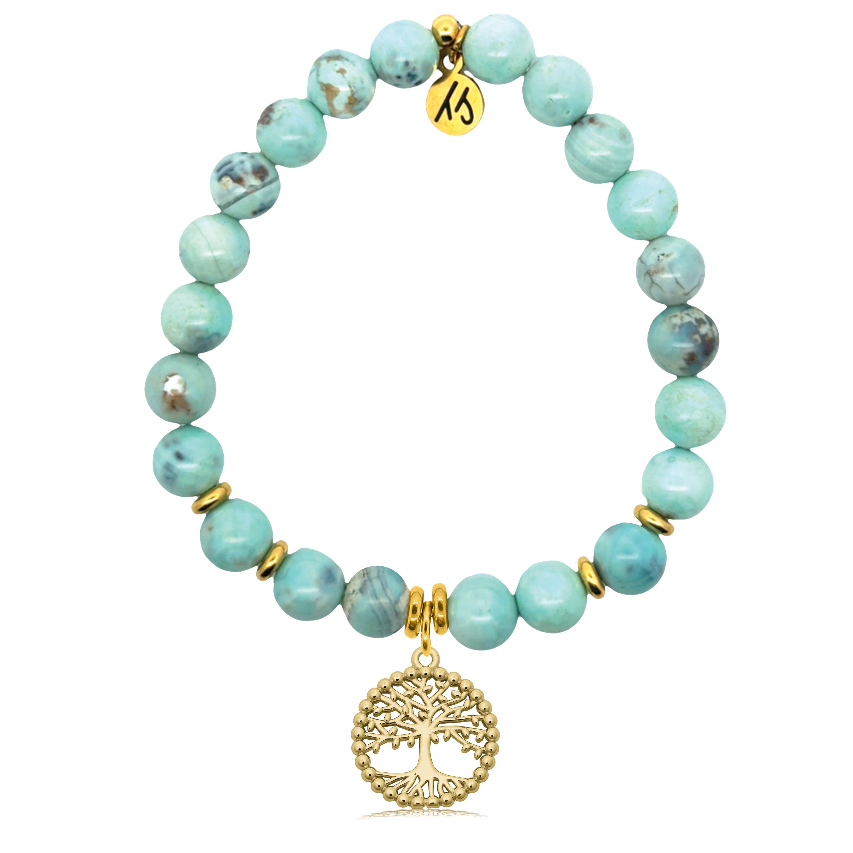 Gold Charm Collection - Robins Egg Agate Gemstone Bracelet with Family Tree Gold Charm