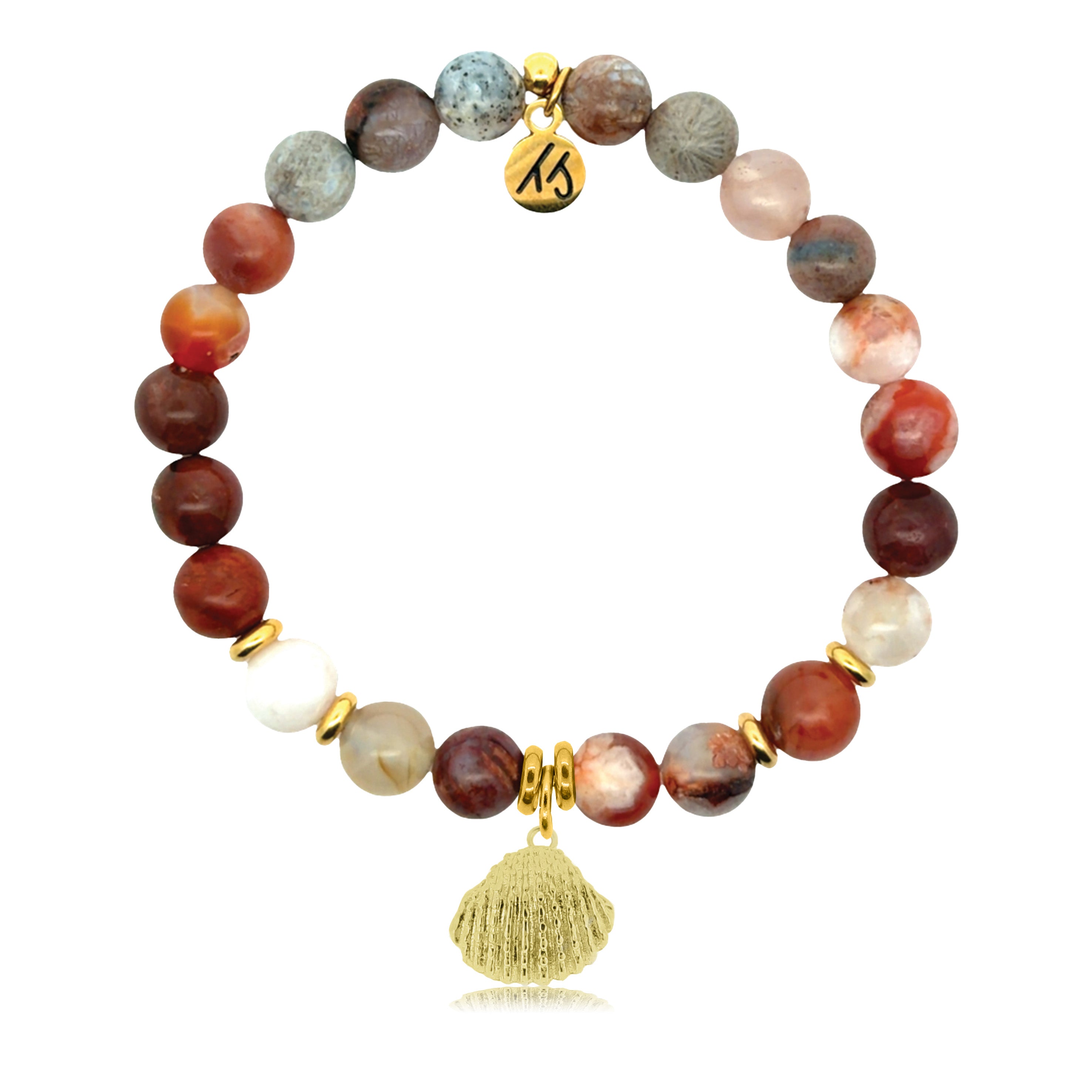 Gold Charm Collection - Sakura Agate Gemstone Bracelet with Seashell Gold Charm