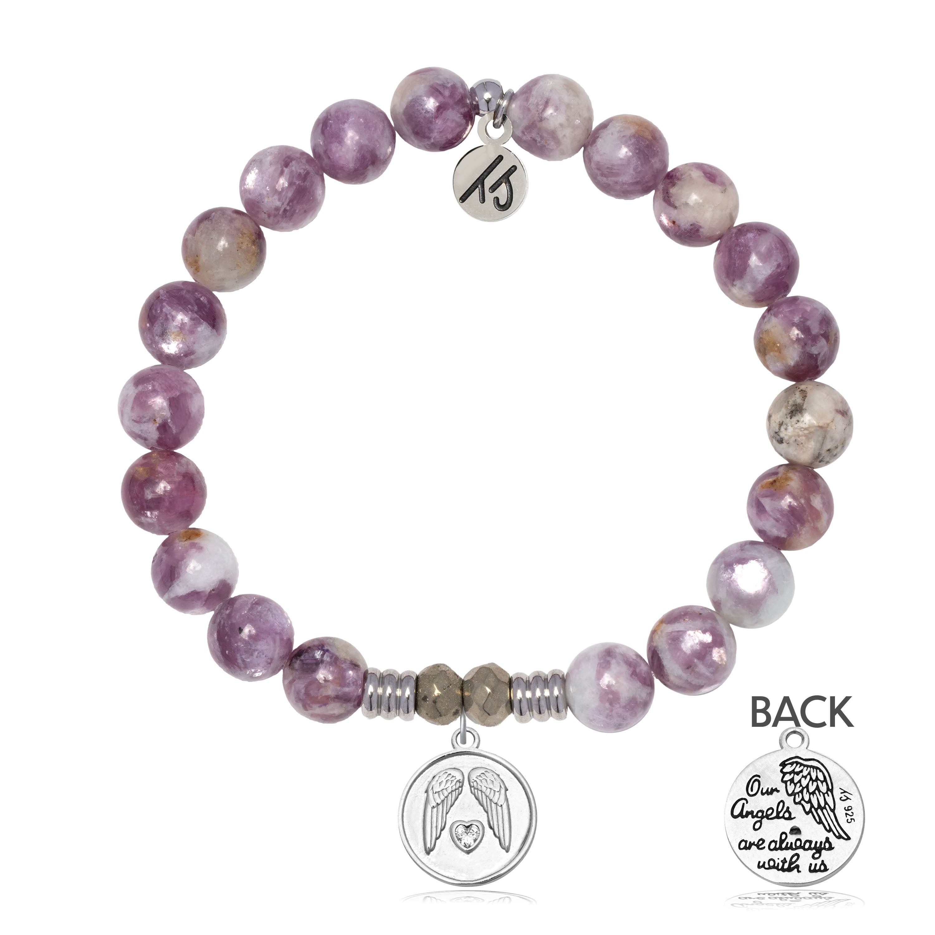 Lepidolite Quartz Gemstone Bracelet with Guardian Sterling Silver Charm