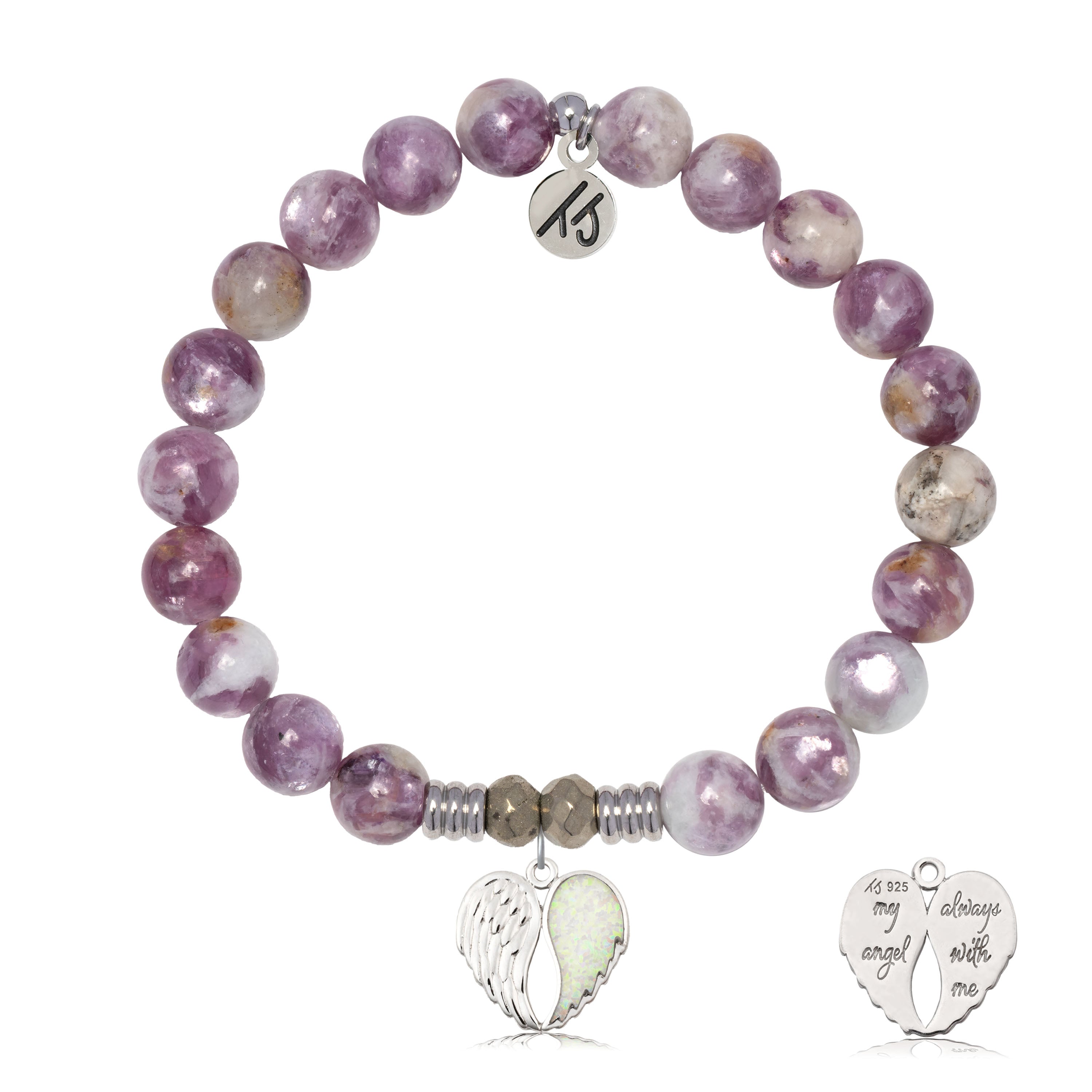 Lepidolite Quartz Gemstone Bracelet with My Angel Sterling Silver Charm