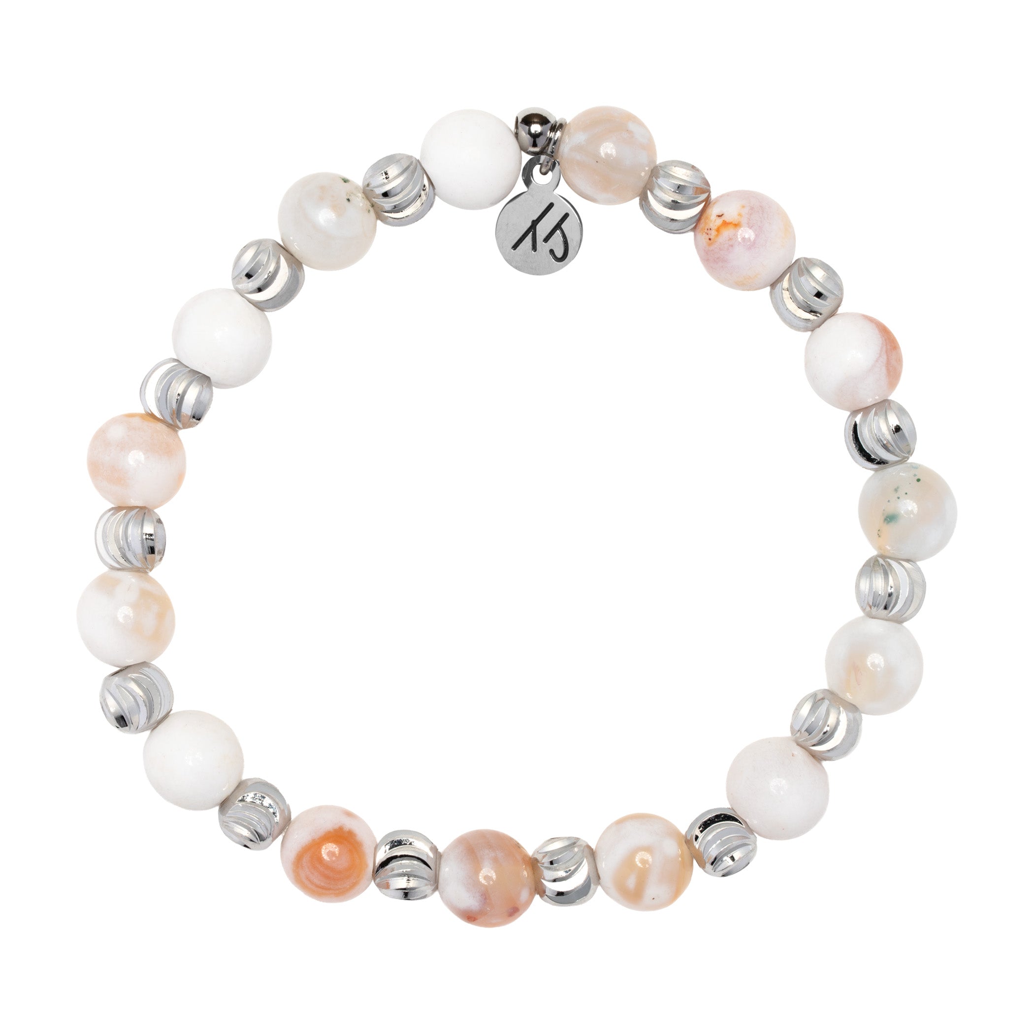 Harmony Collection- Silver with White Natural Agate Gemstone Bracelet