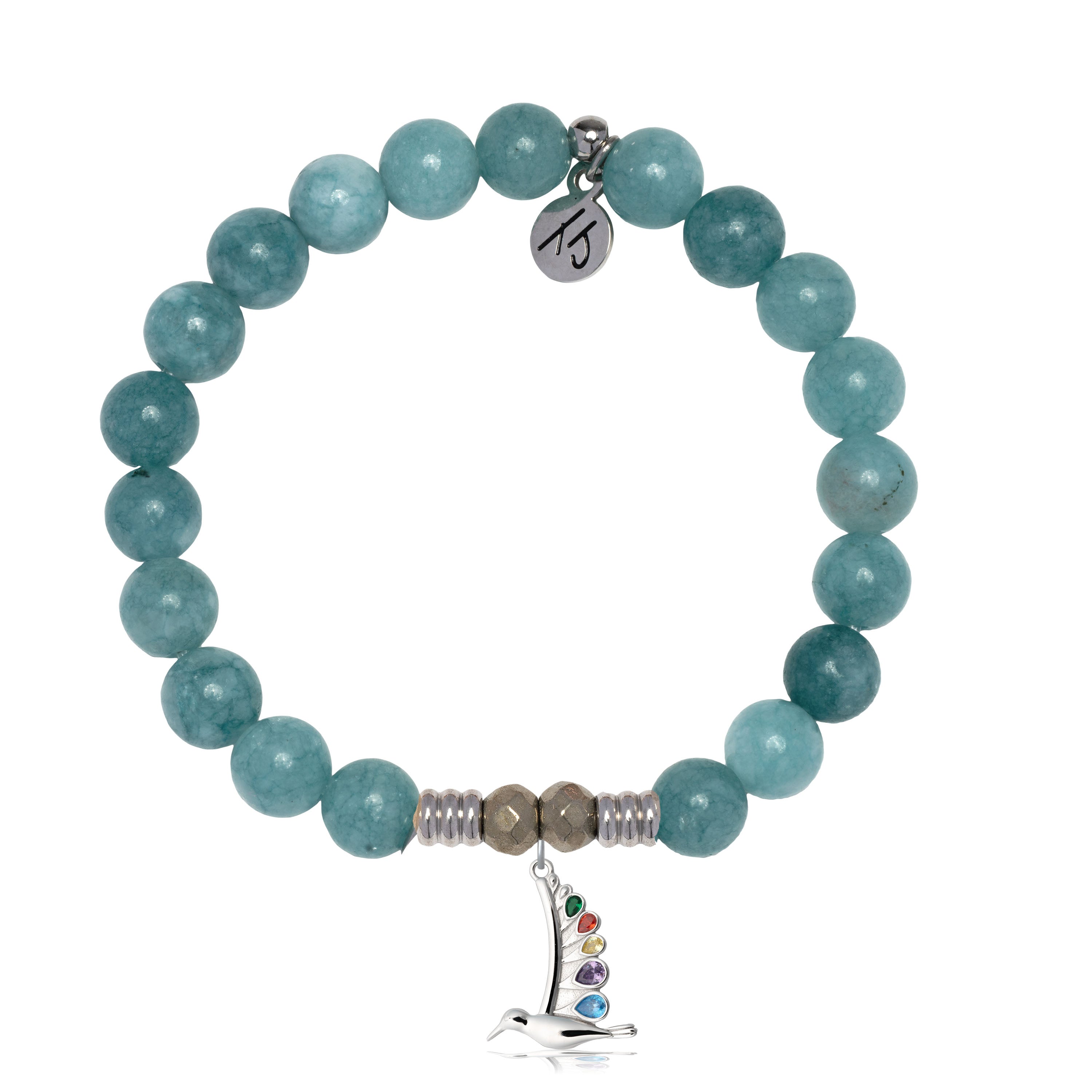 Mountain Blue Jade Gemstone Bracelet with Hummingbird Sterling Silver Charm