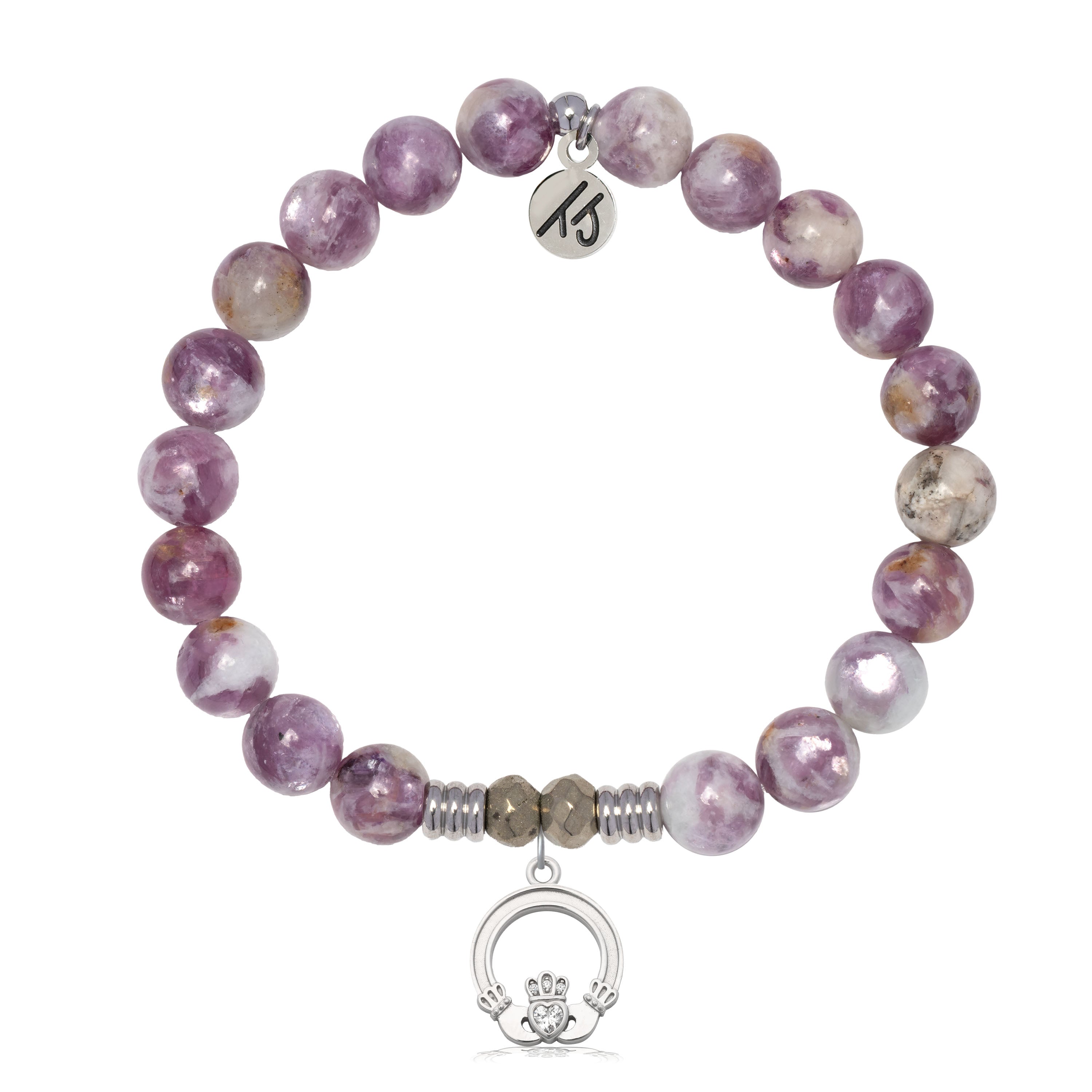 Lepidolite Quartz Gemstone Bracelet with Claddagh Sterling Silver Charm
