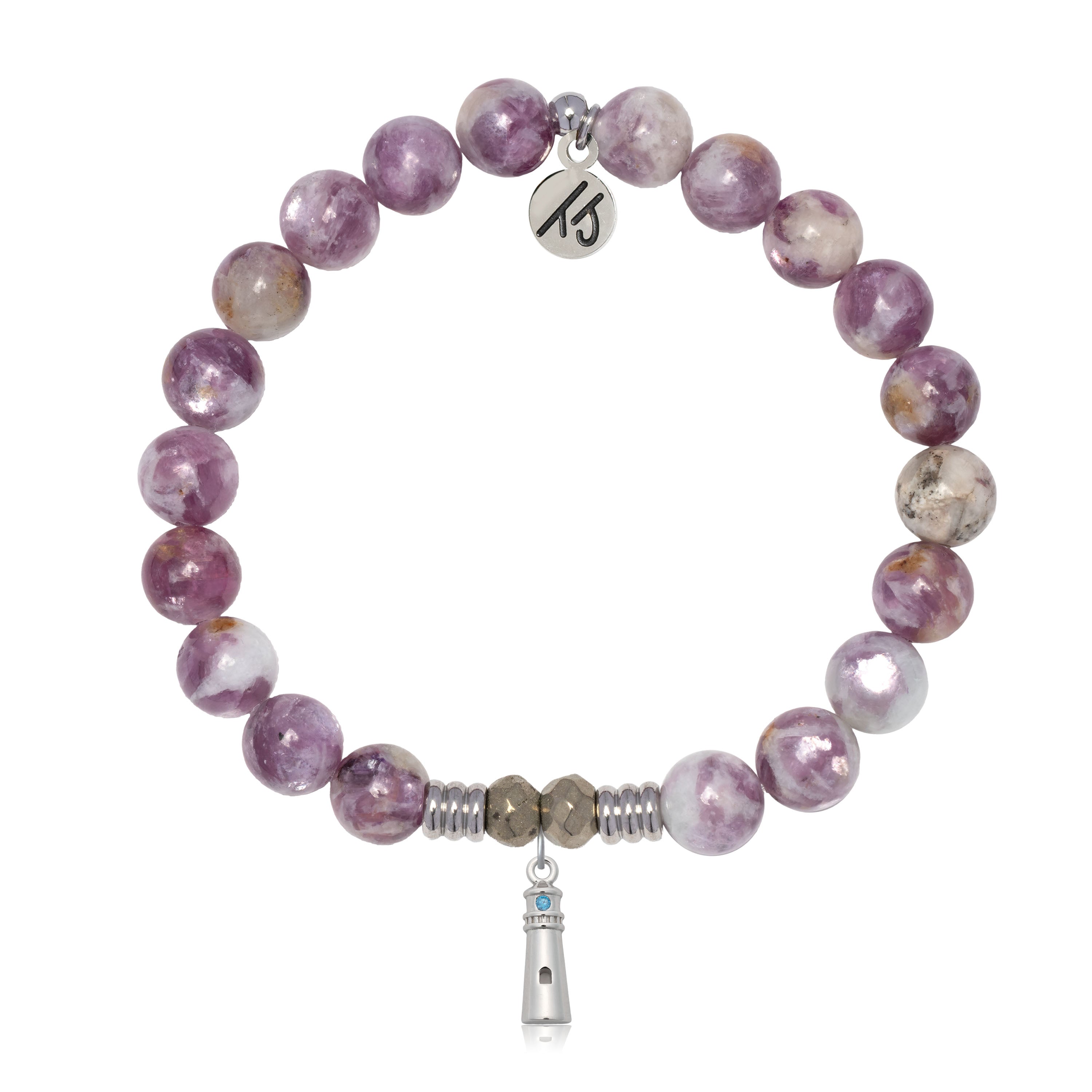 Lepidolite Quartz Gemstone Bracelet with Lighthouse Sterling Silver Charm