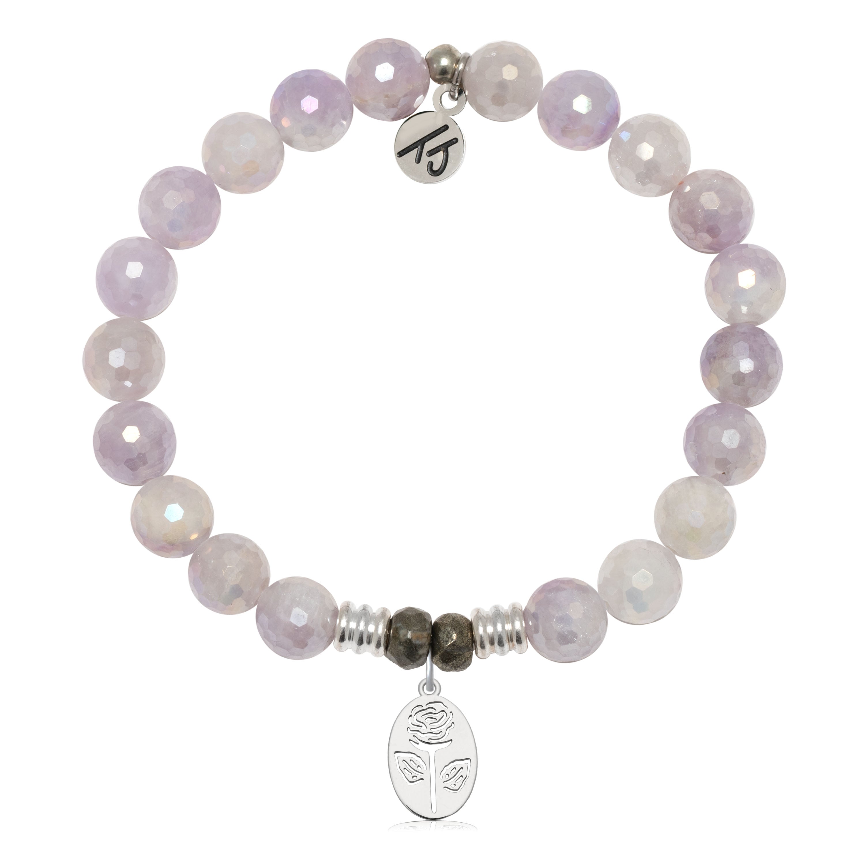 Mauve Jade Gemstone Bracelet with Rose Cutout Sterling Silver Charm