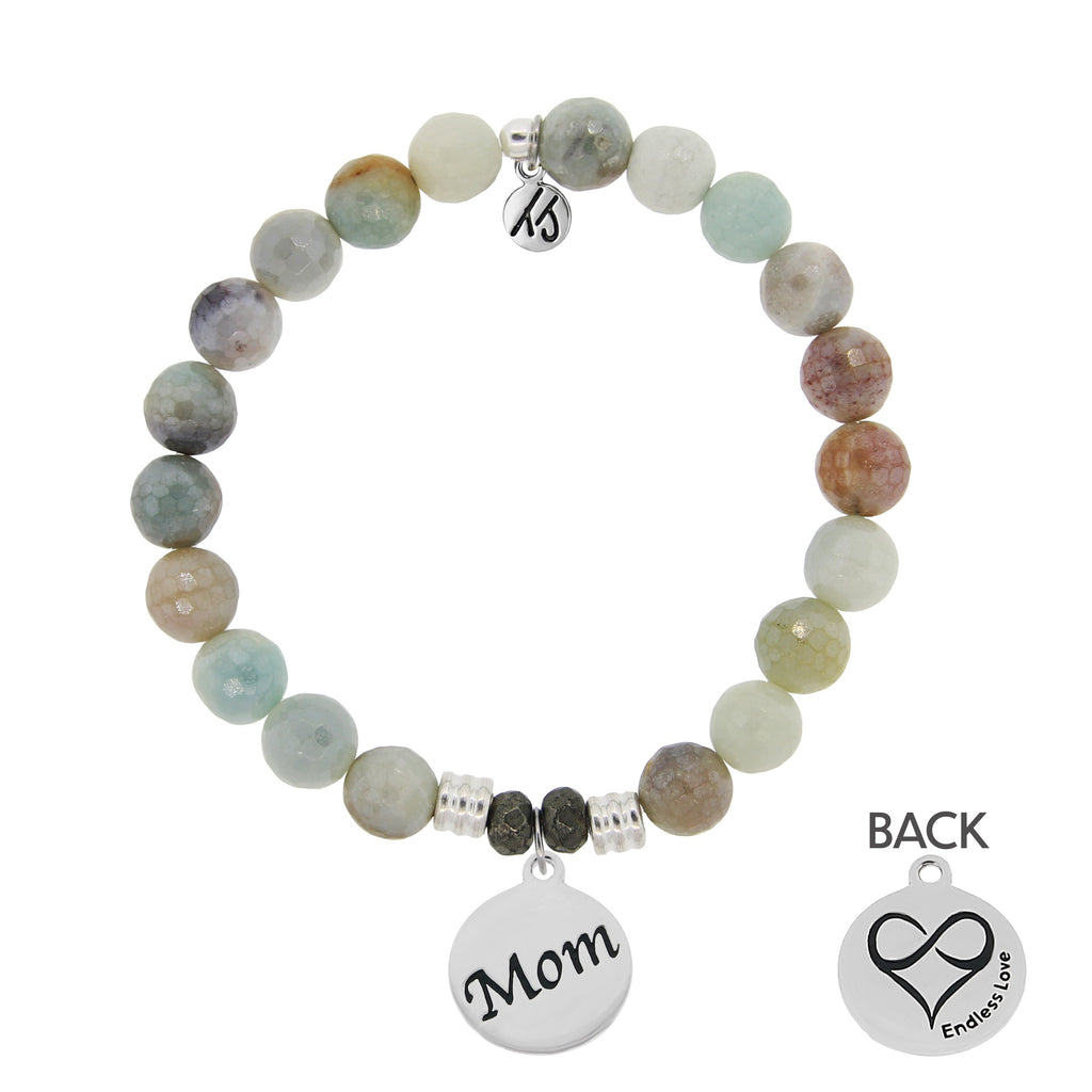 Multi Amazonite Gemstone Bracelet with Mom Sterling Silver Charm