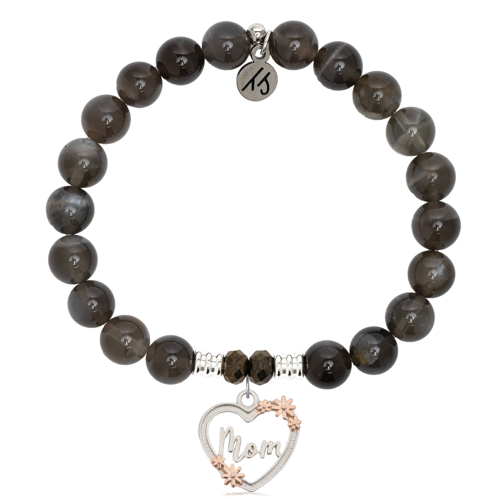 Moonstone Gemstone Bracelet with Endless Love Mom Sterling Silver Charm